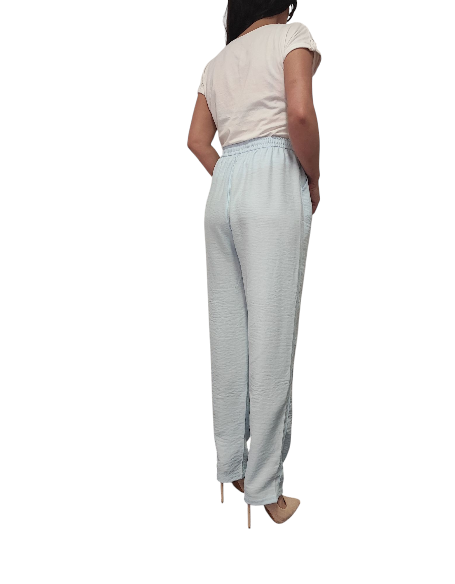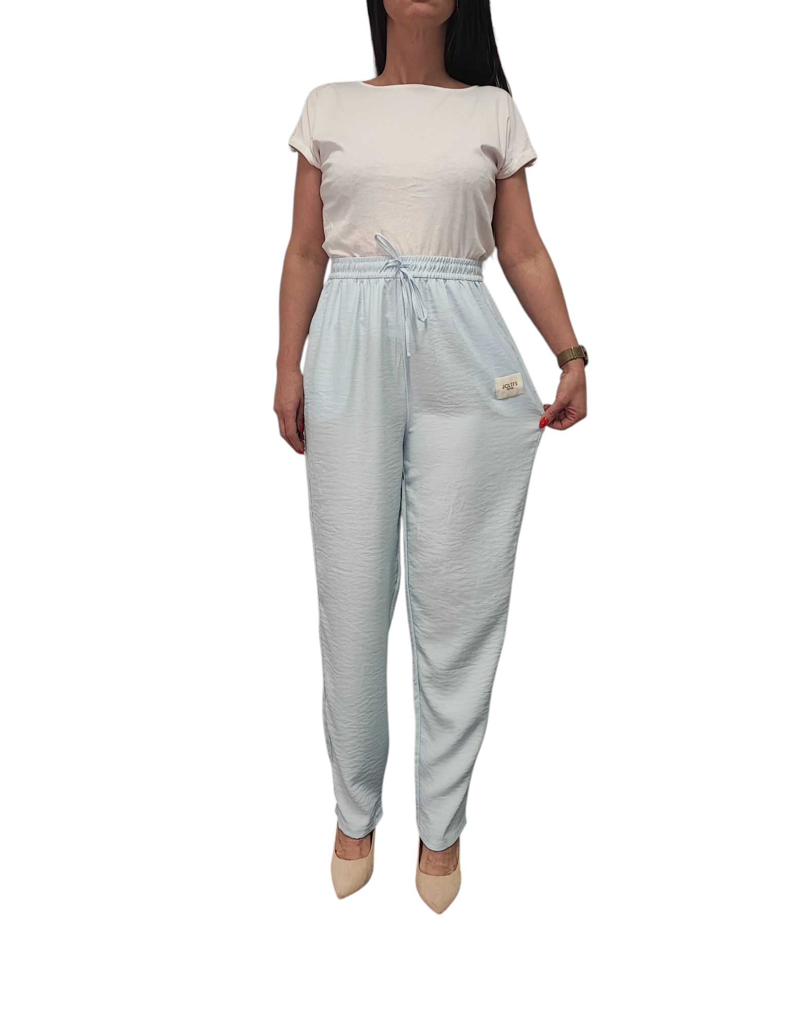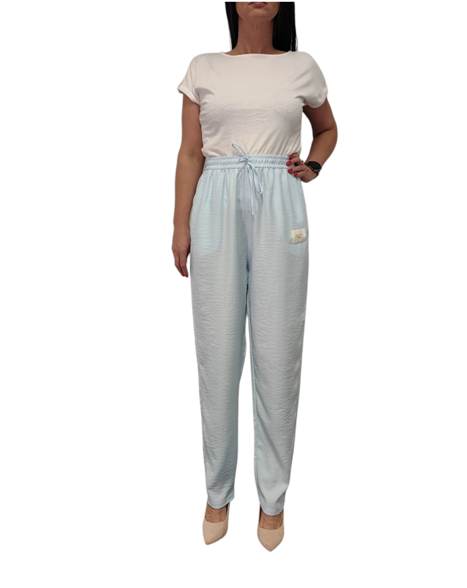 Spodnie Damskie z Materiału Szerokie Wysoki Stan Bawełna Lato Błękitne