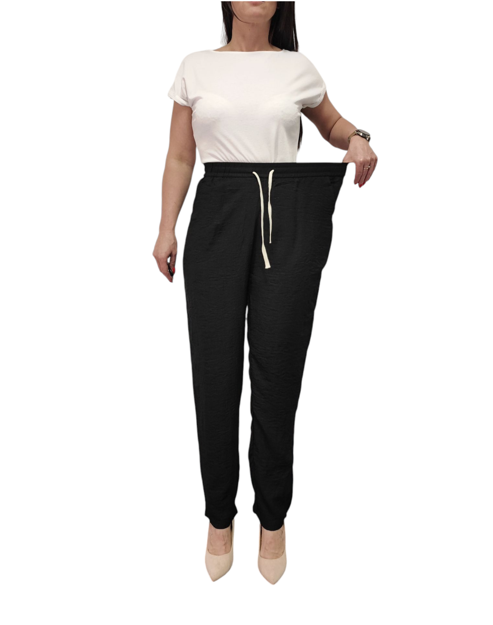 - Szerokość nogawki na dole: 17 cm x2(bez rozciągania)