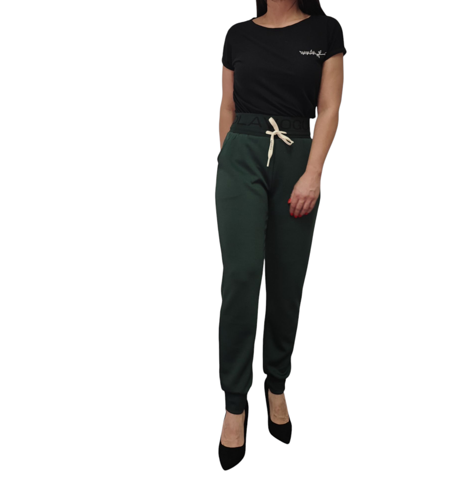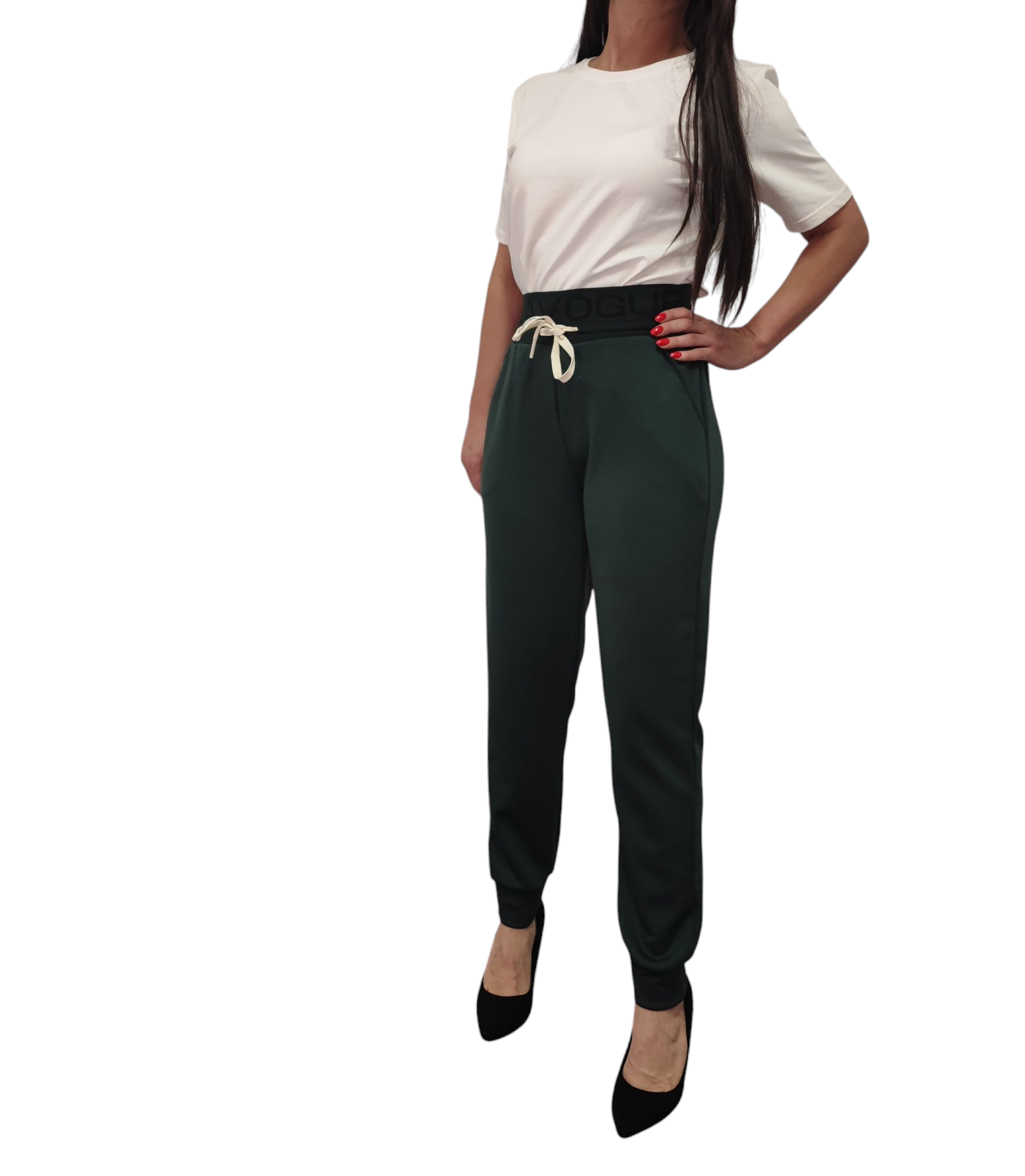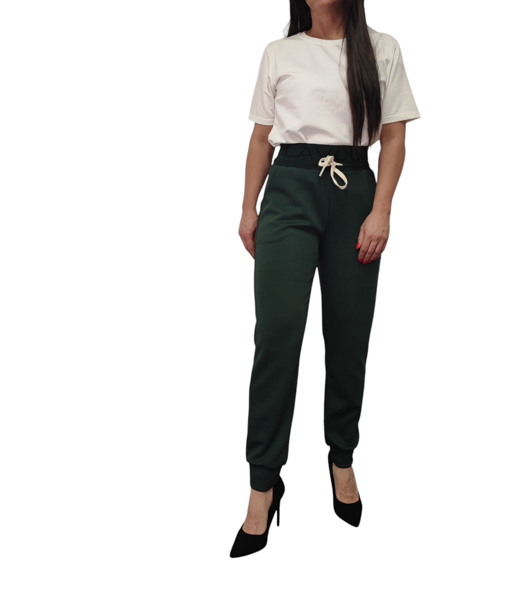 Spodnie Typu Masełko z Napisem Gumka w Pasie Bawełna Zielone