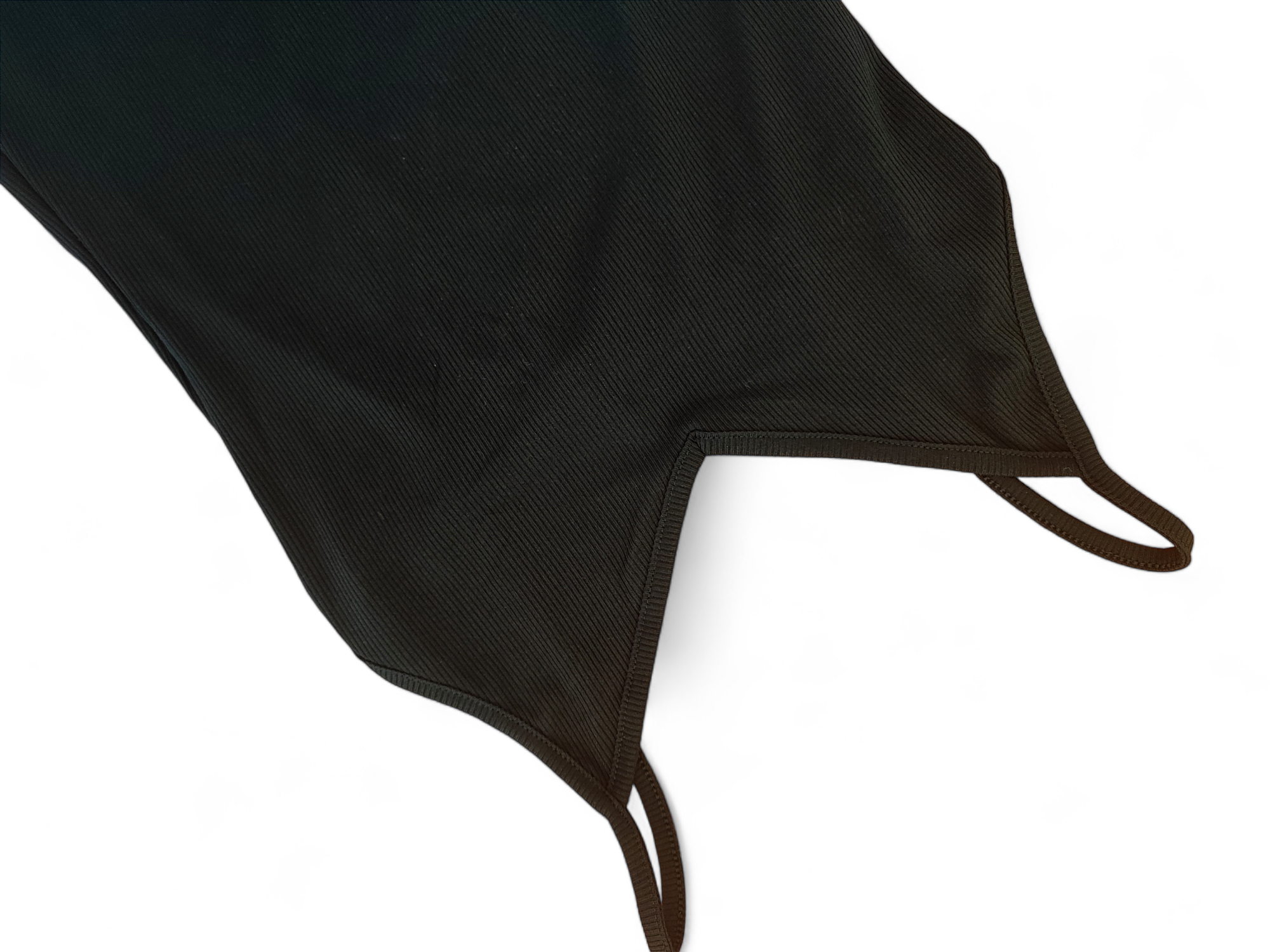 Sukienka w całości z materiału drobno prążkowanego, miły w dotyku, nie prześwituje, ELASTYCZNY. Cienkie ramiączka, długi rozporek. Na plecach wszyta gumeczka, dzięki czemu sukienka nie odstaje tylko przylega.