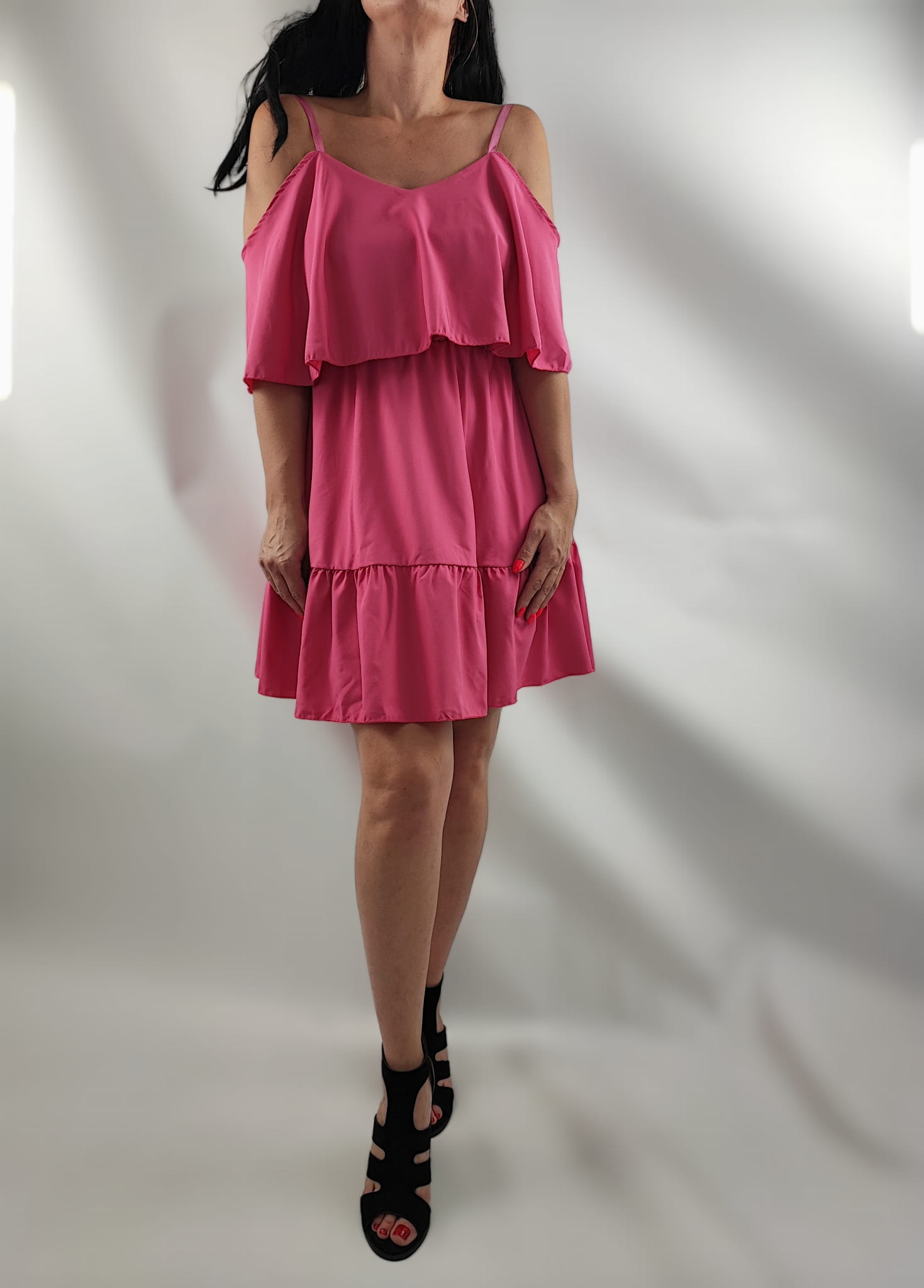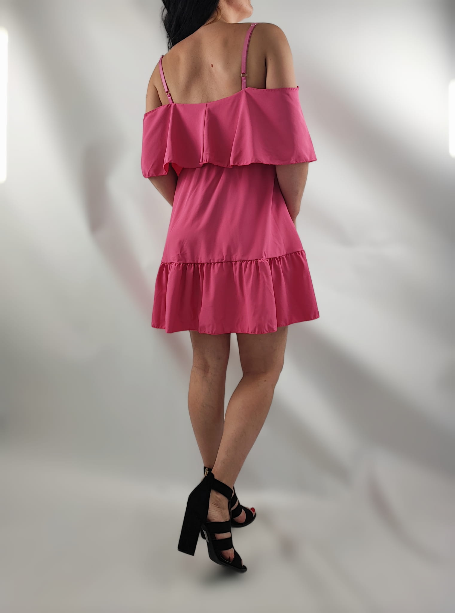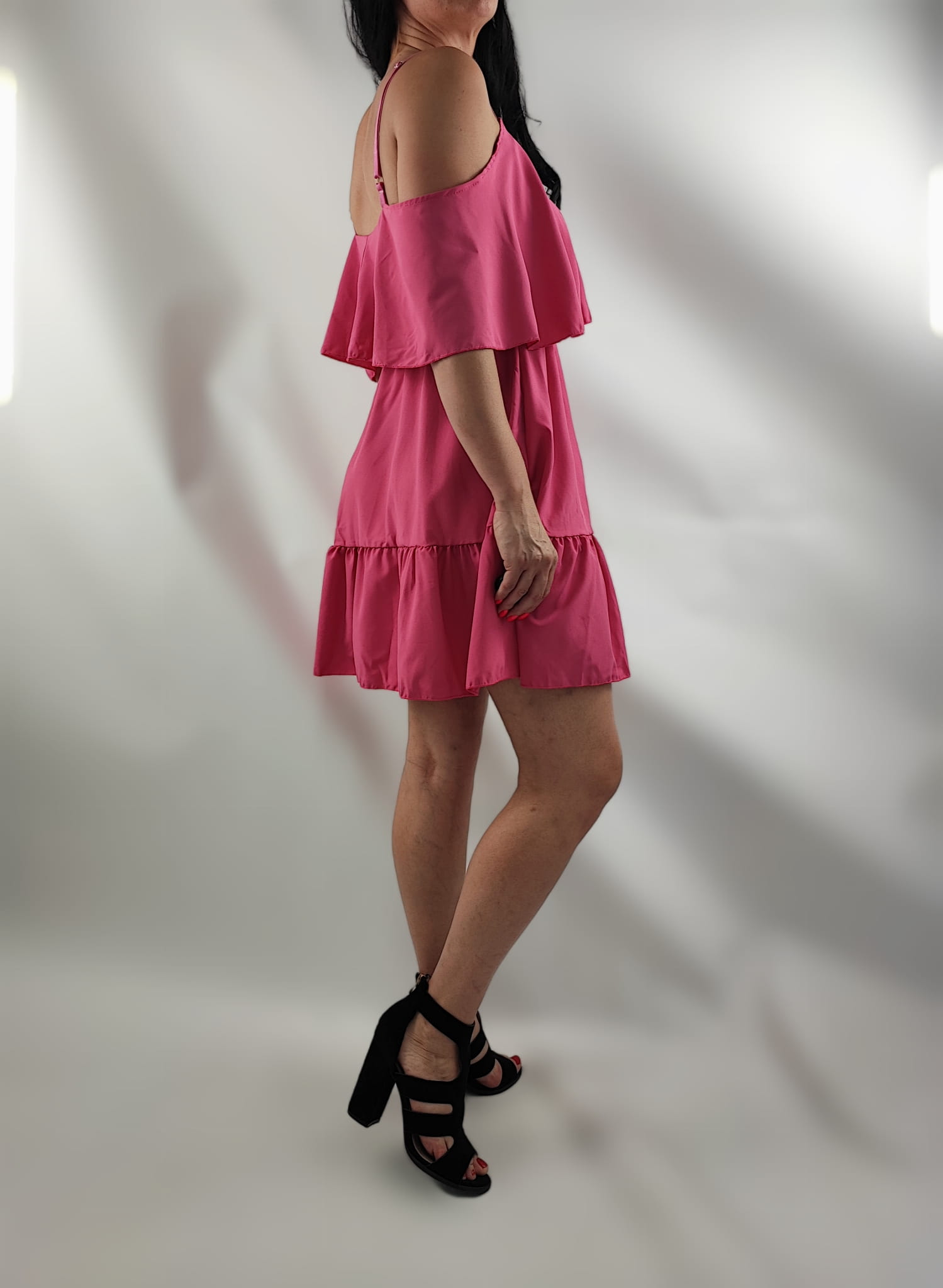 Sukienka Damska Hiszpanka Ramiączka Falbany Krótka Różowa Uni.S/M