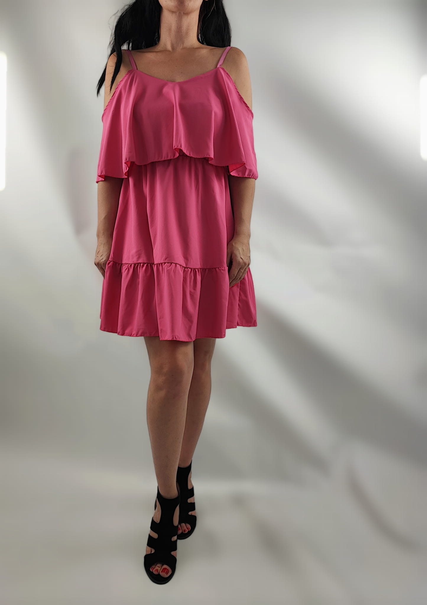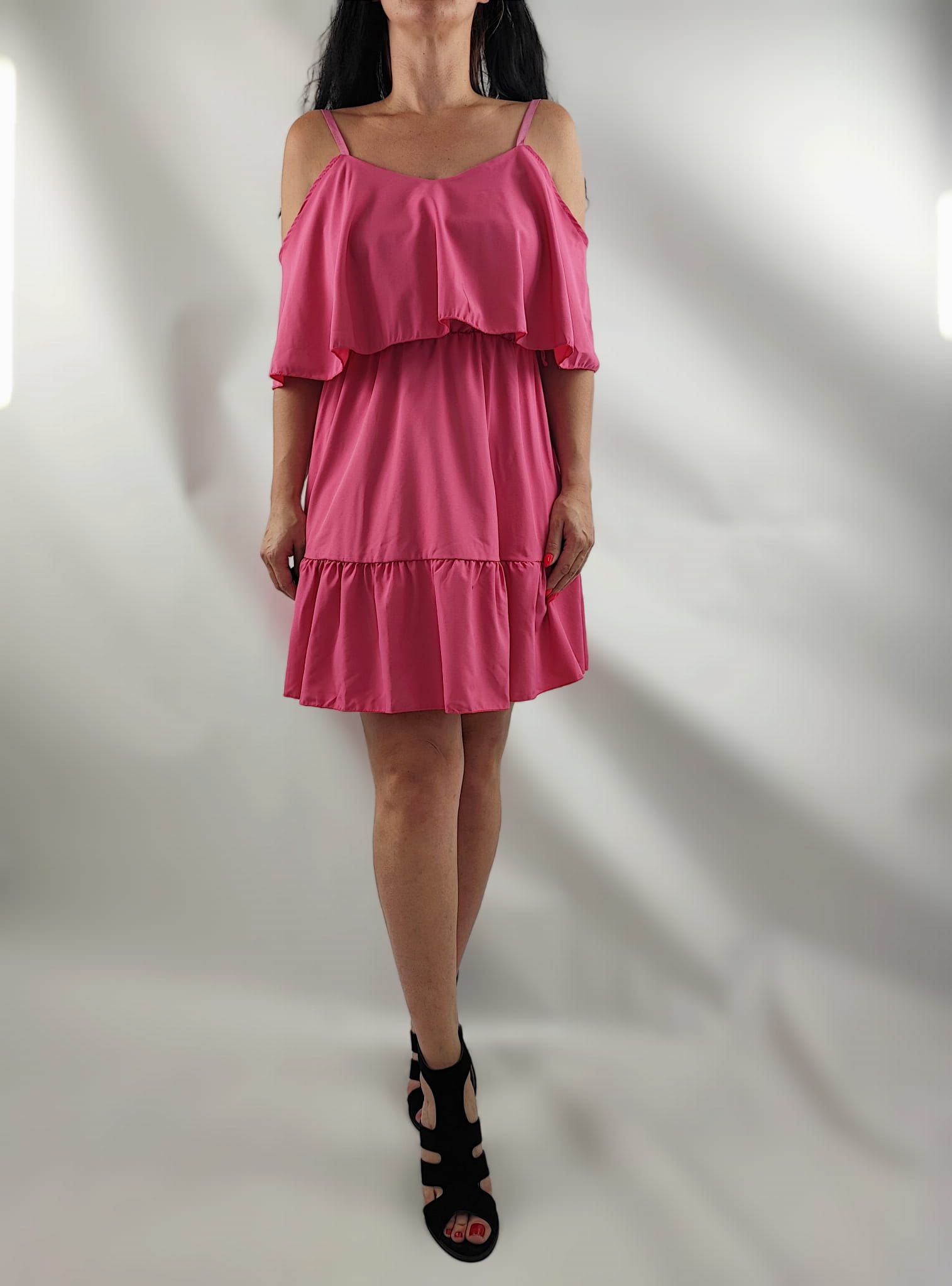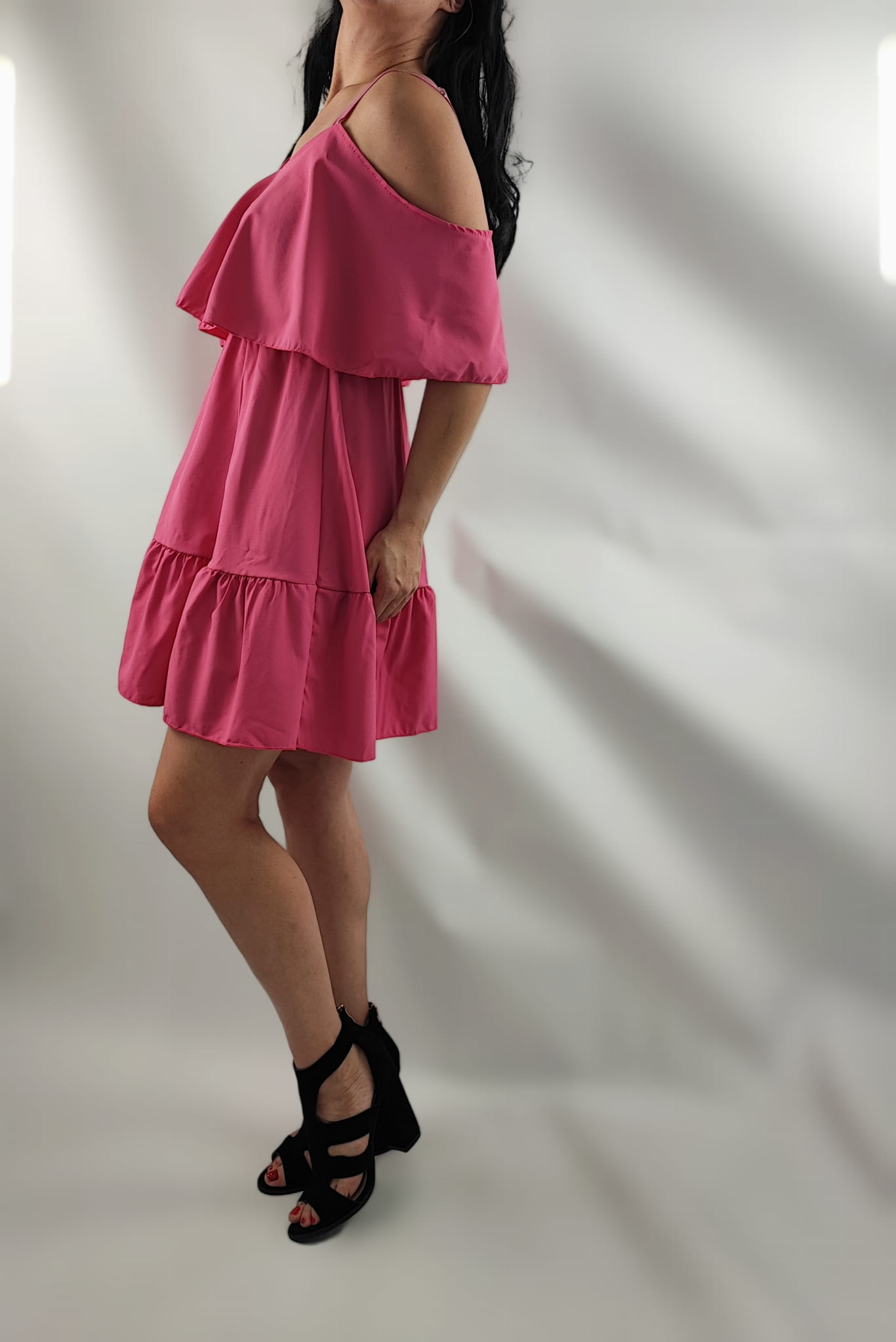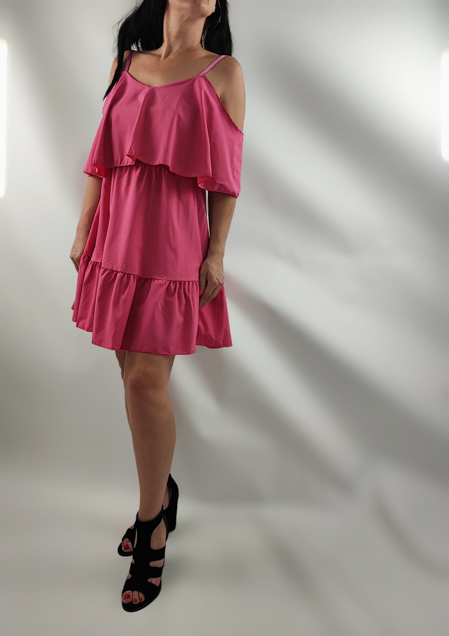 Sukienka Damska Hiszpanka Ramiączka Falbany Krótka Różowa Uni.S/M