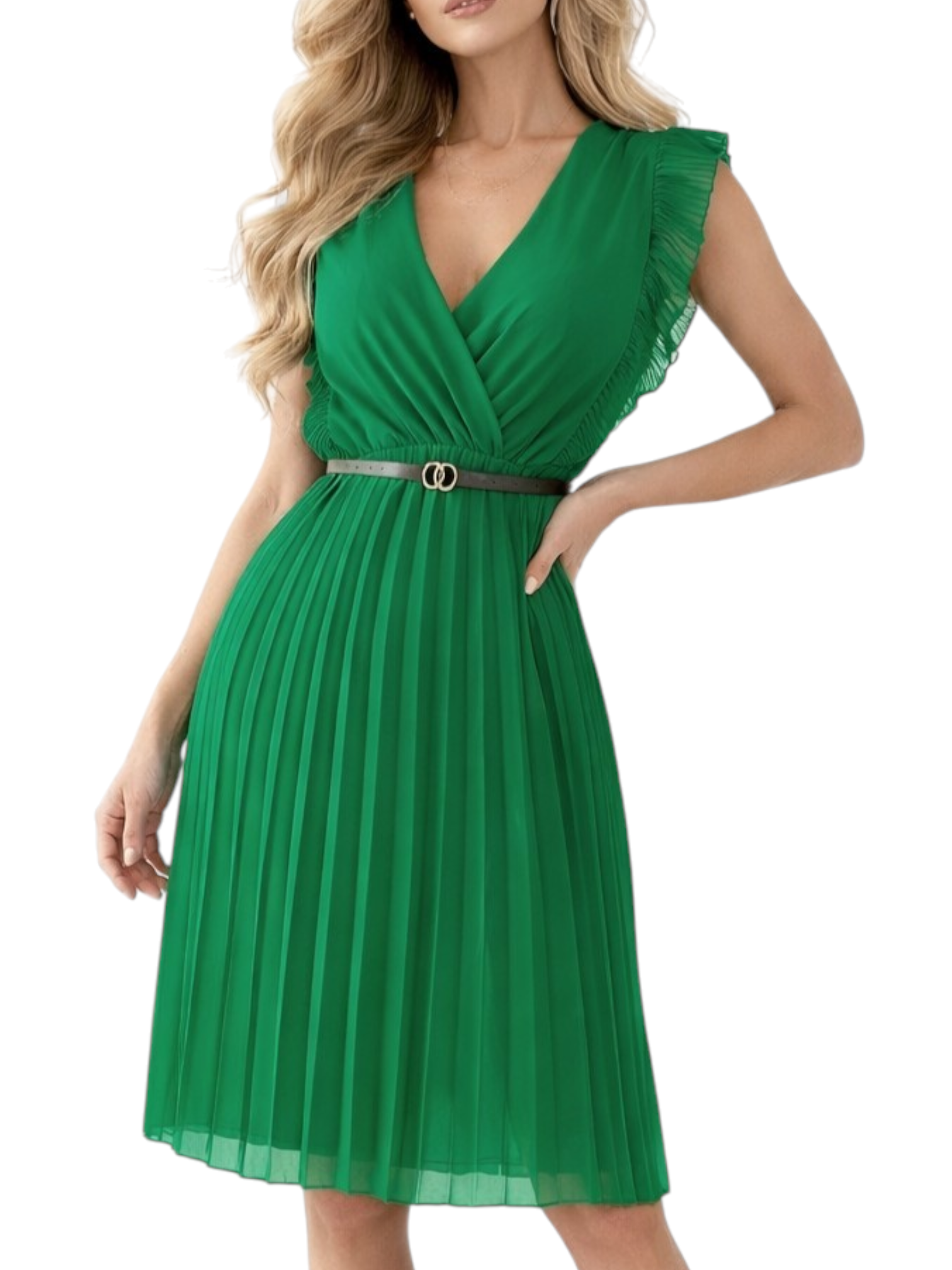 Sukienka Damska Szyfonowa Plisowana z Paskiem Chrzciny Wesele Midi Zielona