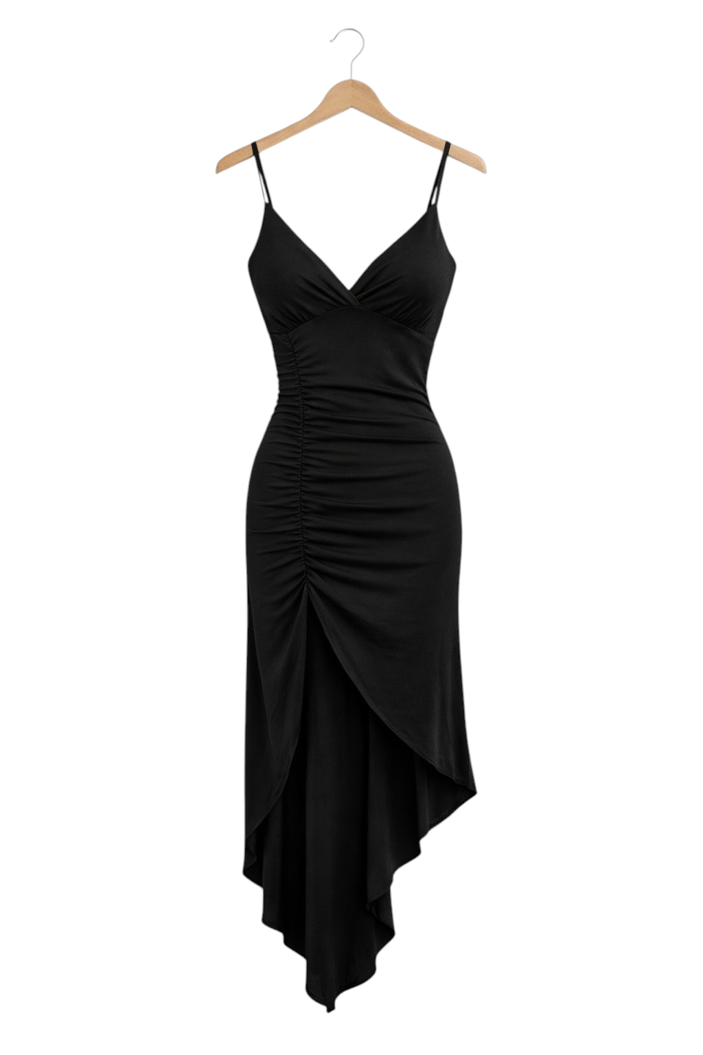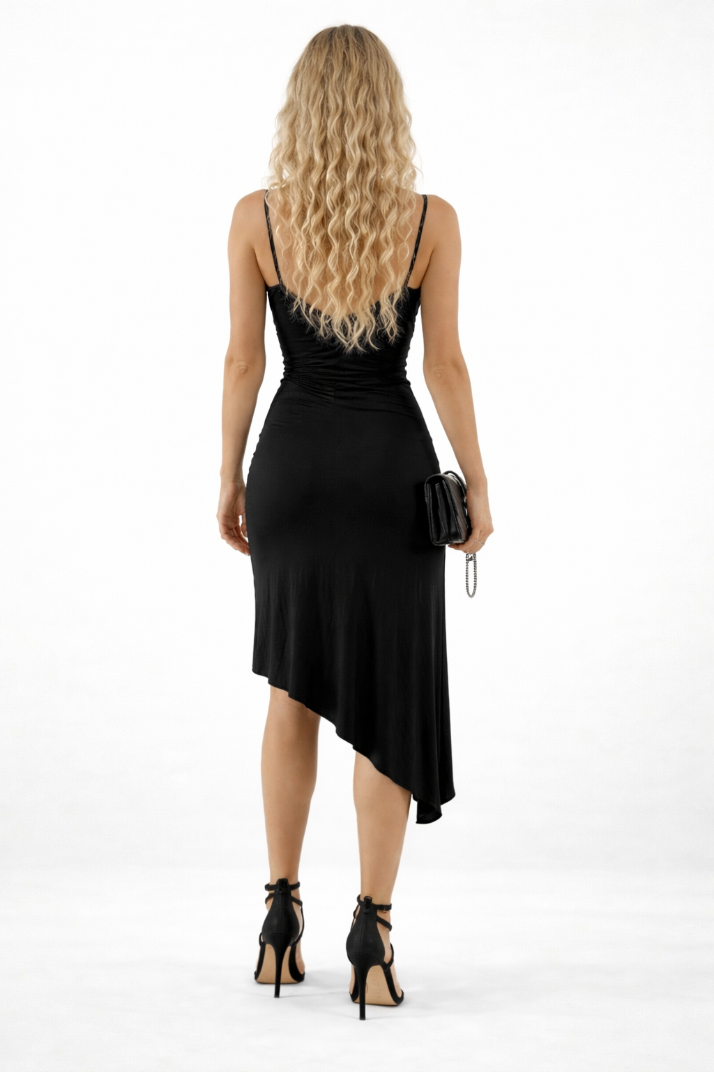 Sukienka Elegancka Asymetryczna na Ramiączkach Wesele Przyjęcie Czarna