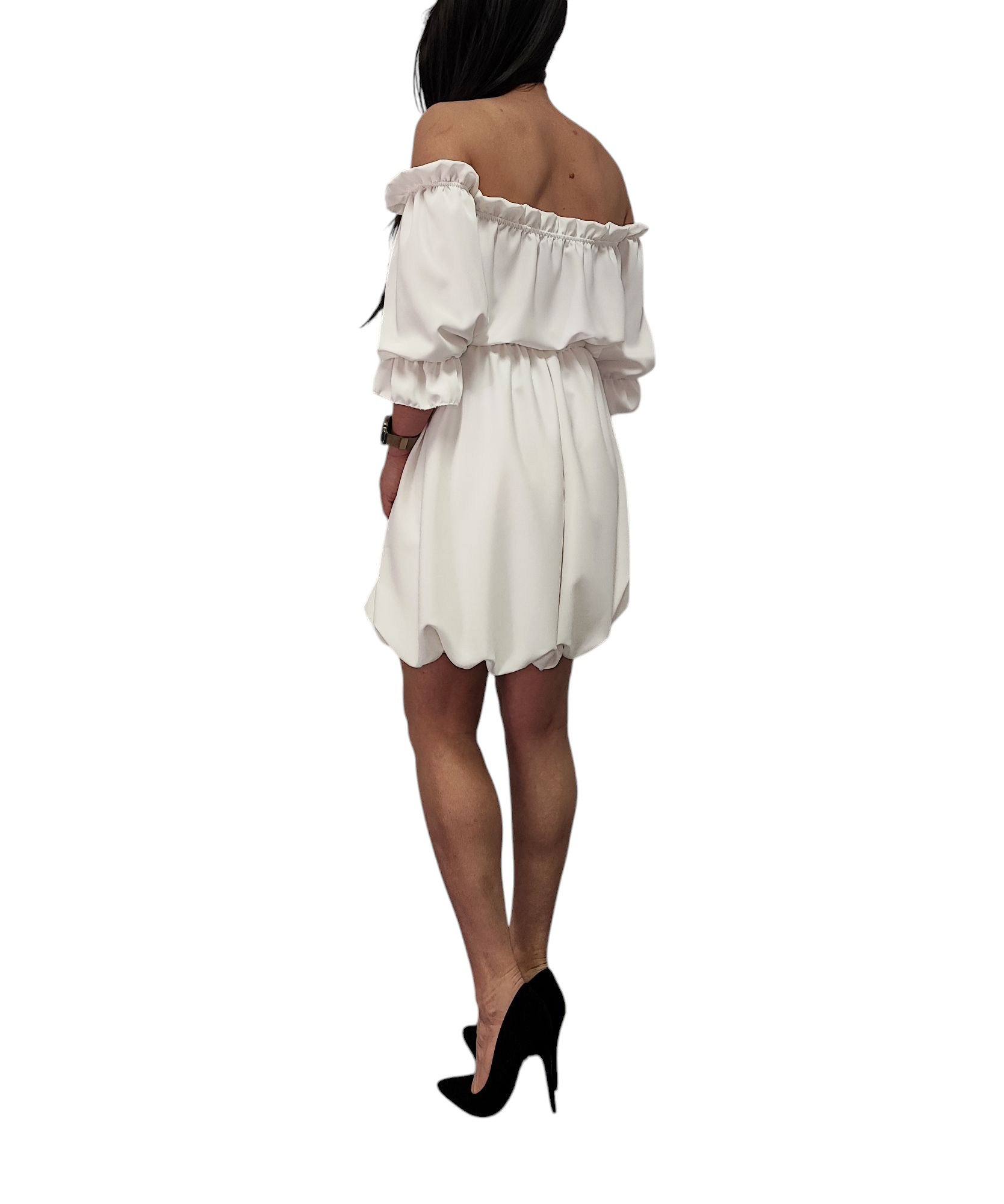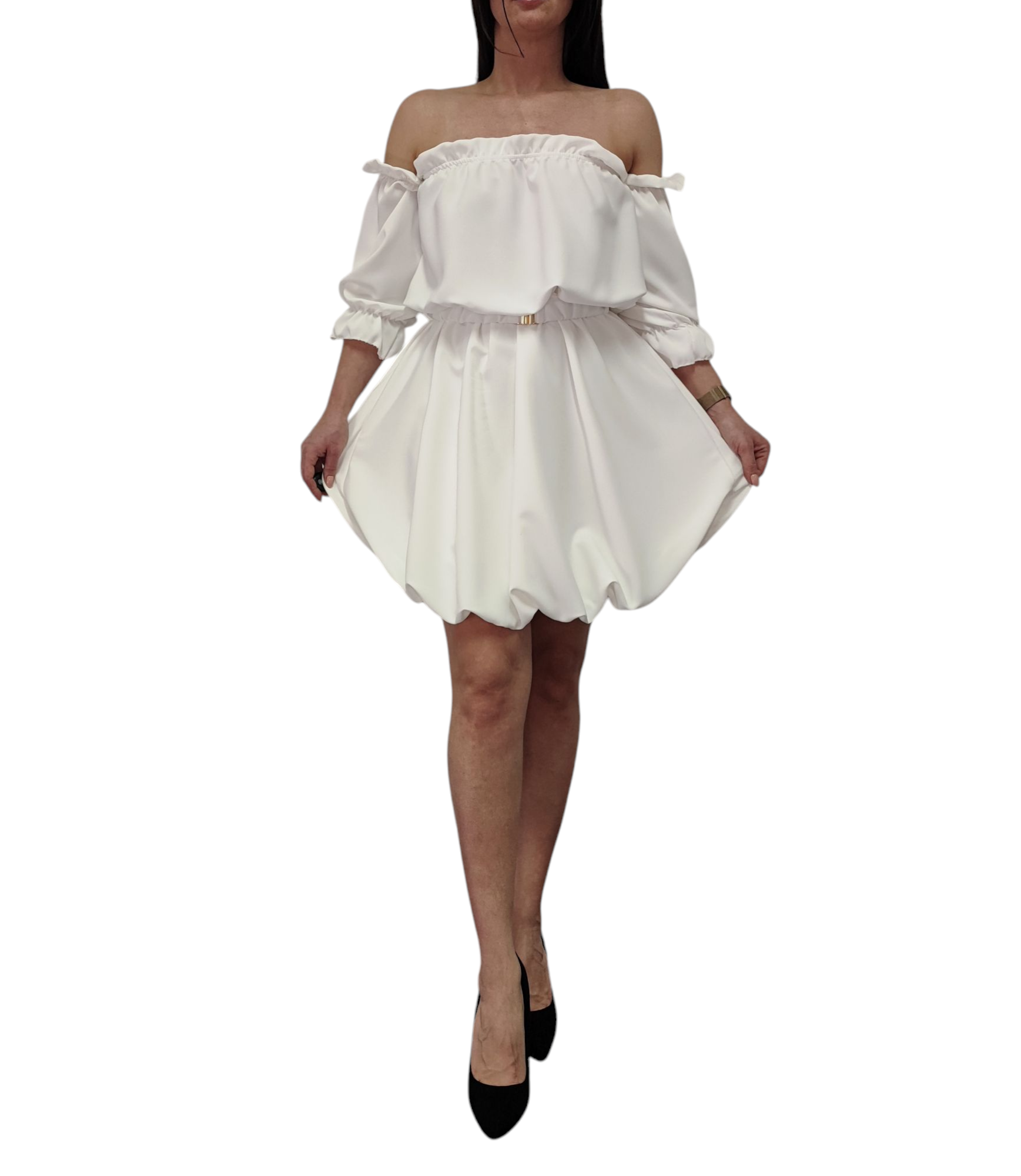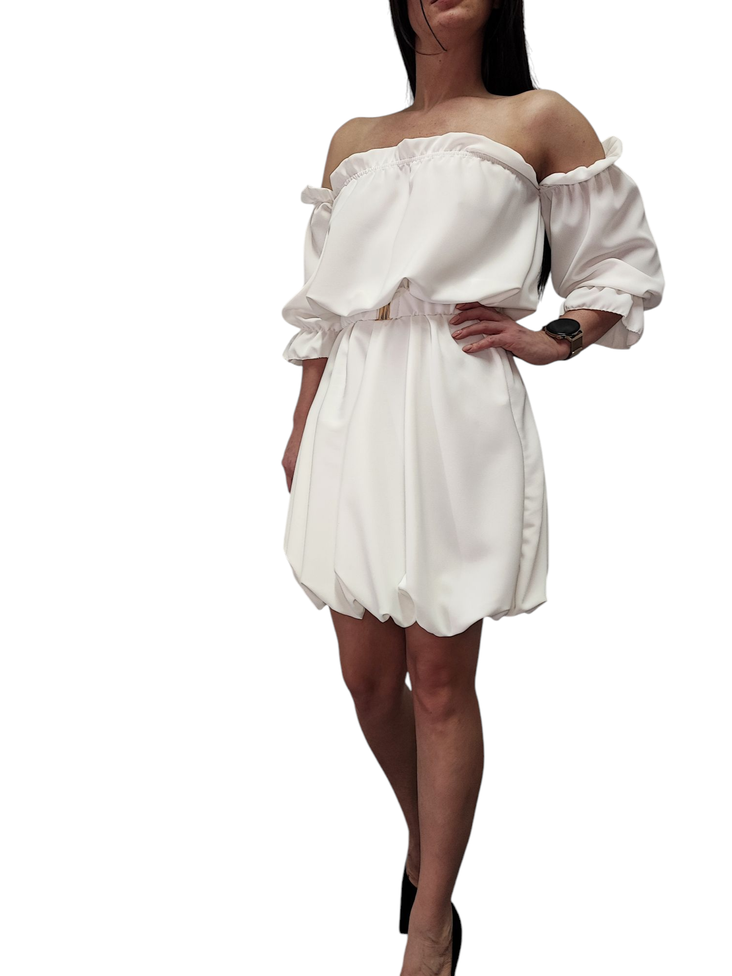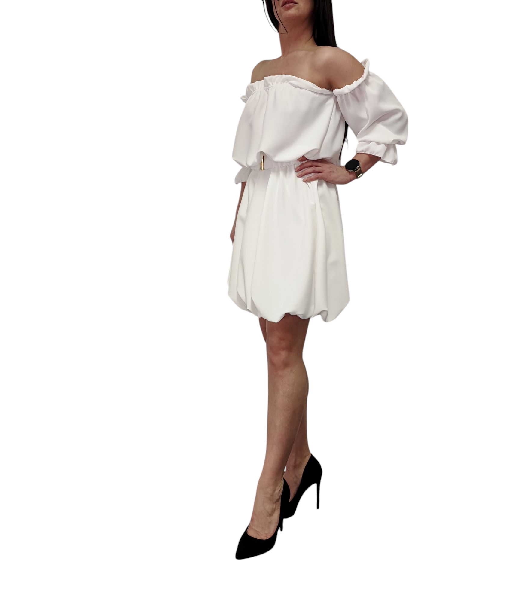 - Krój hiszpanki, subtelnie odsłaniającym dekolt i ramiona