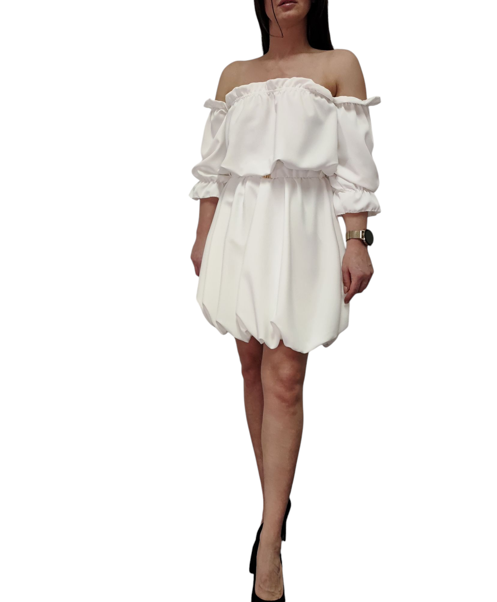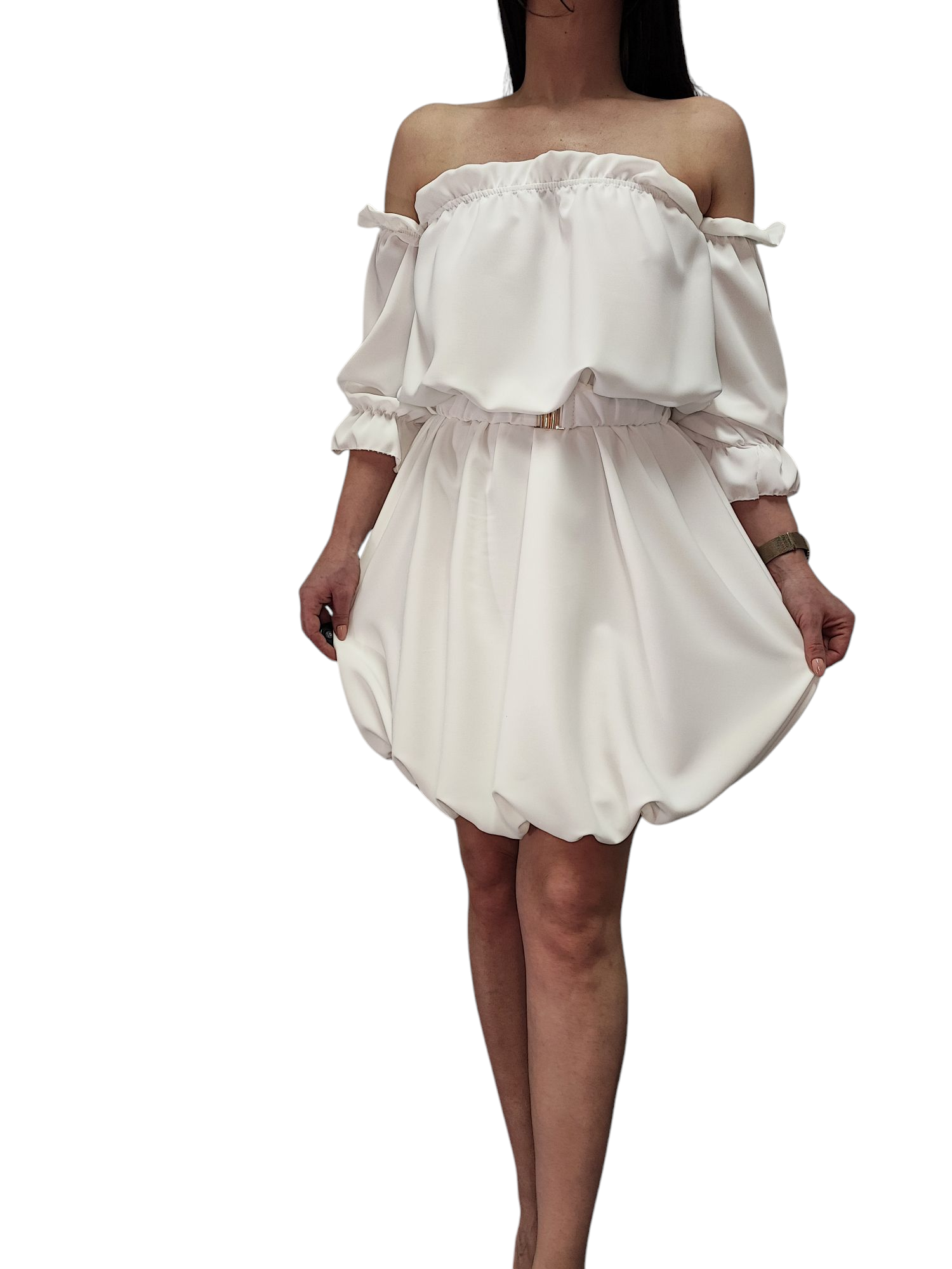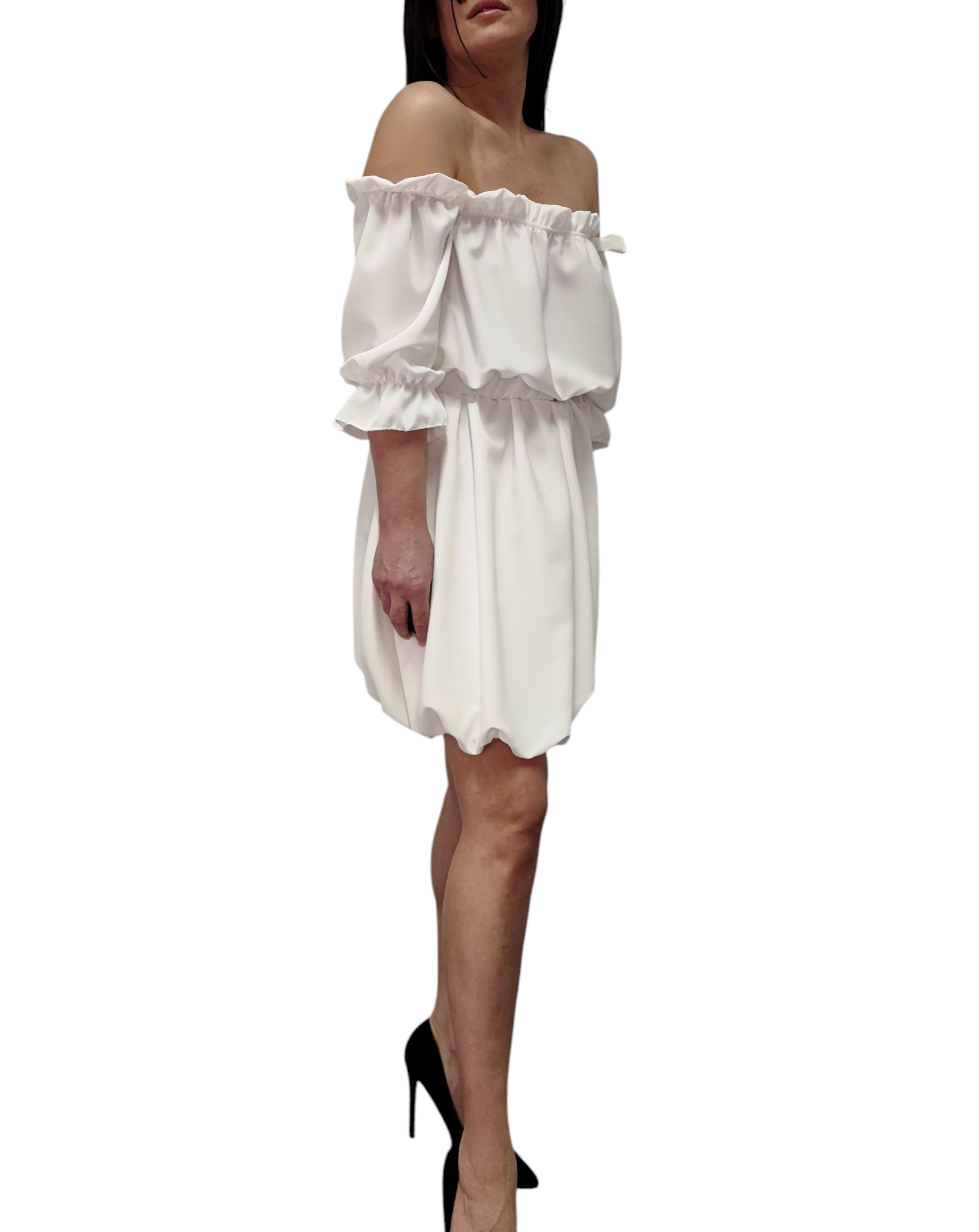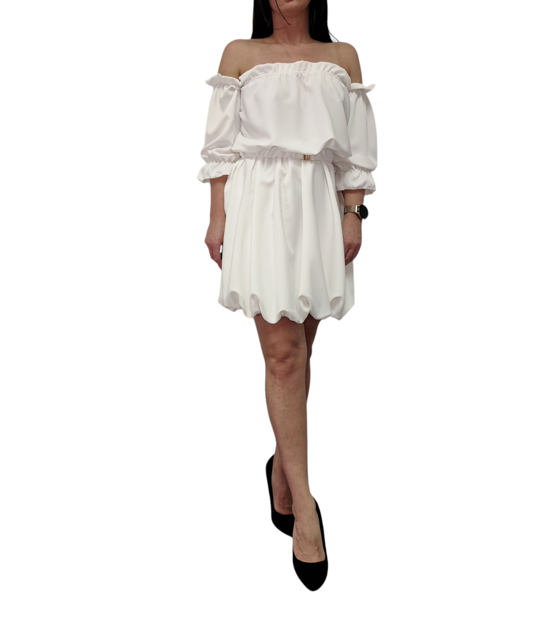 - Krój hiszpanki, subtelnie odsłaniającym dekolt i ramiona