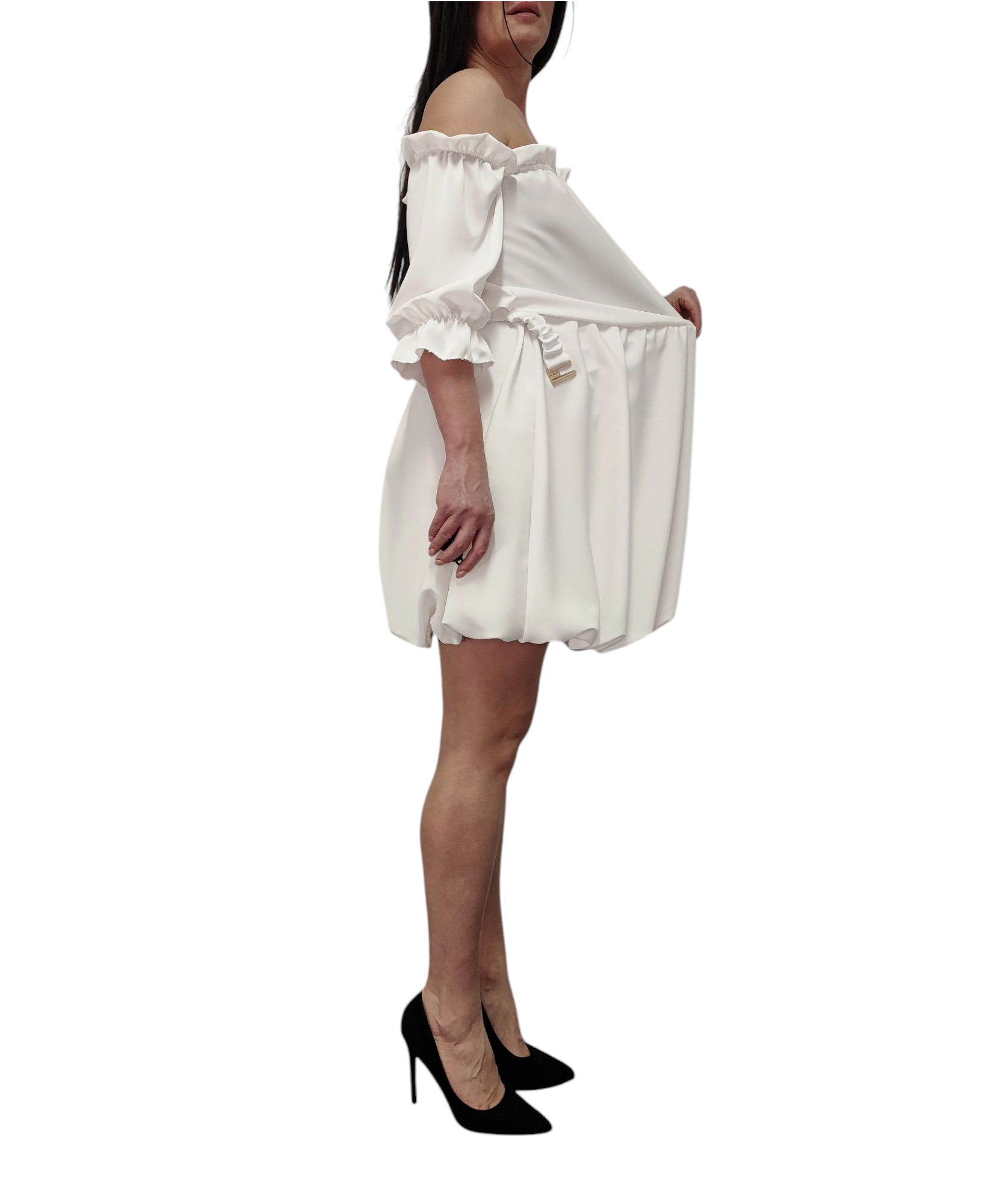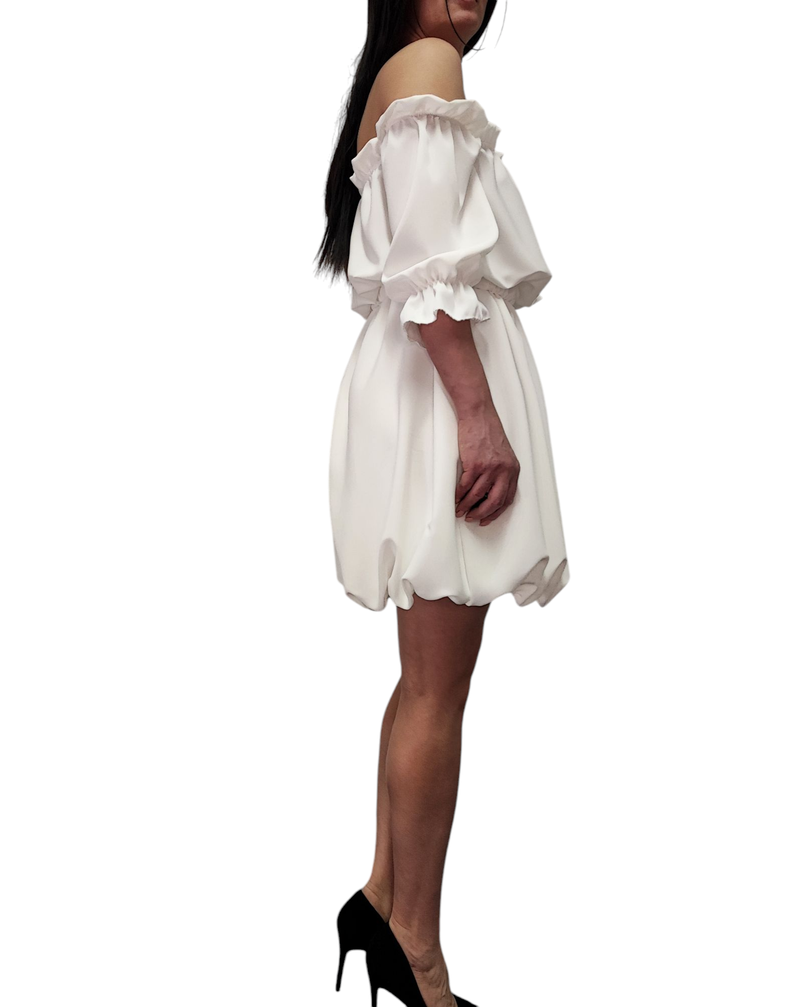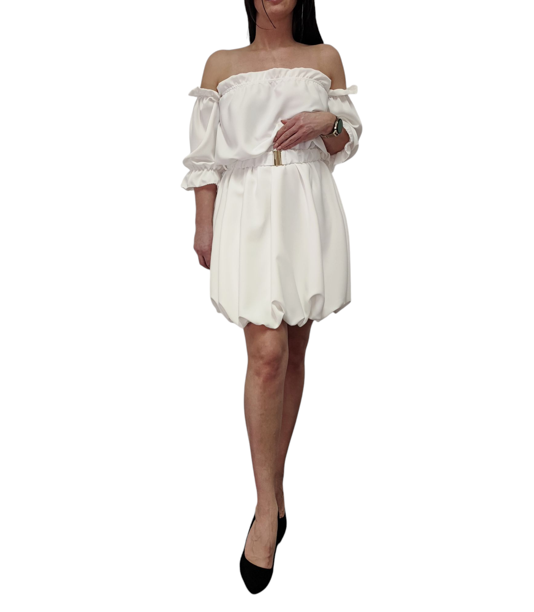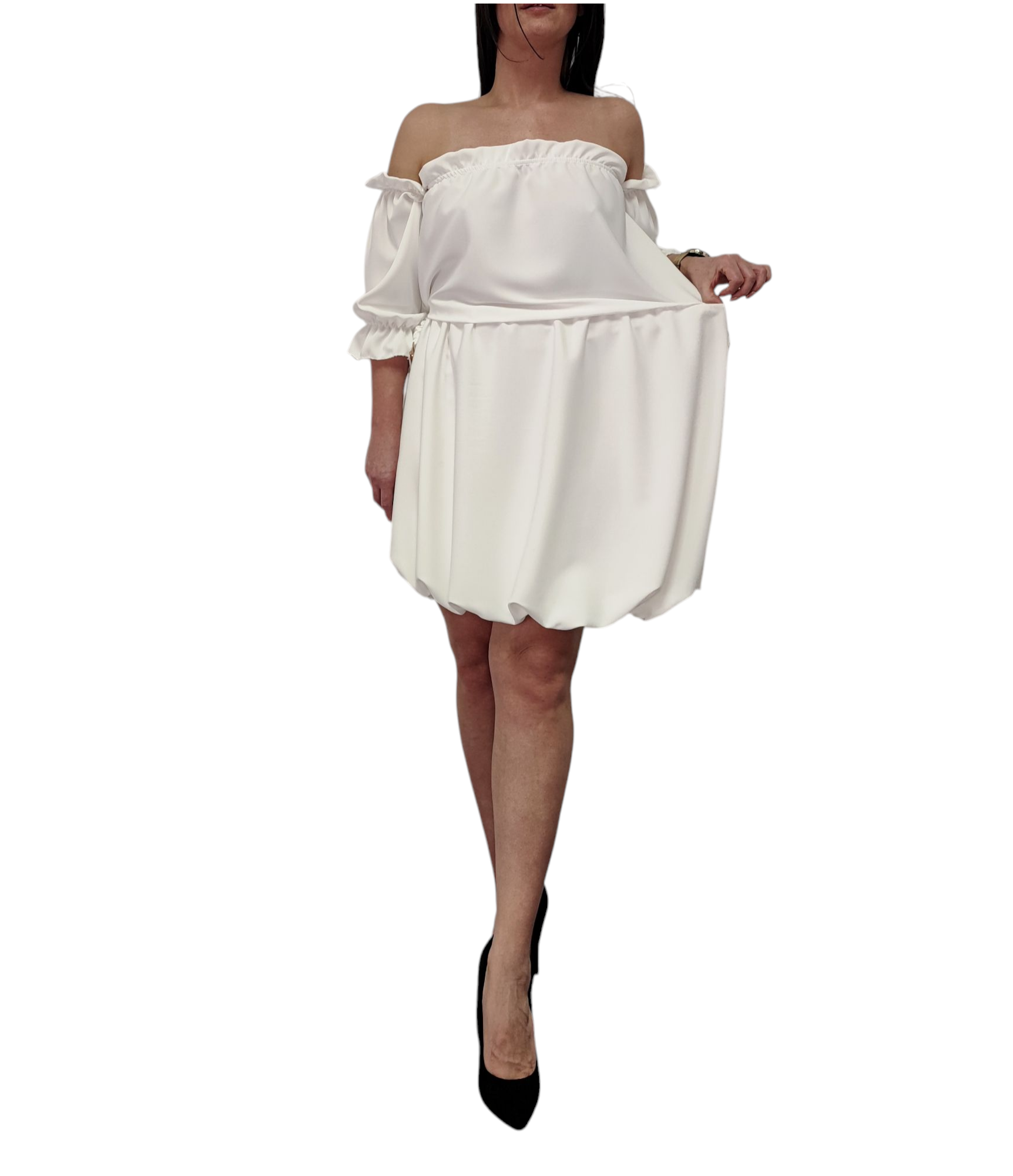 - Krój hiszpanki, subtelnie odsłaniającym dekolt i ramiona