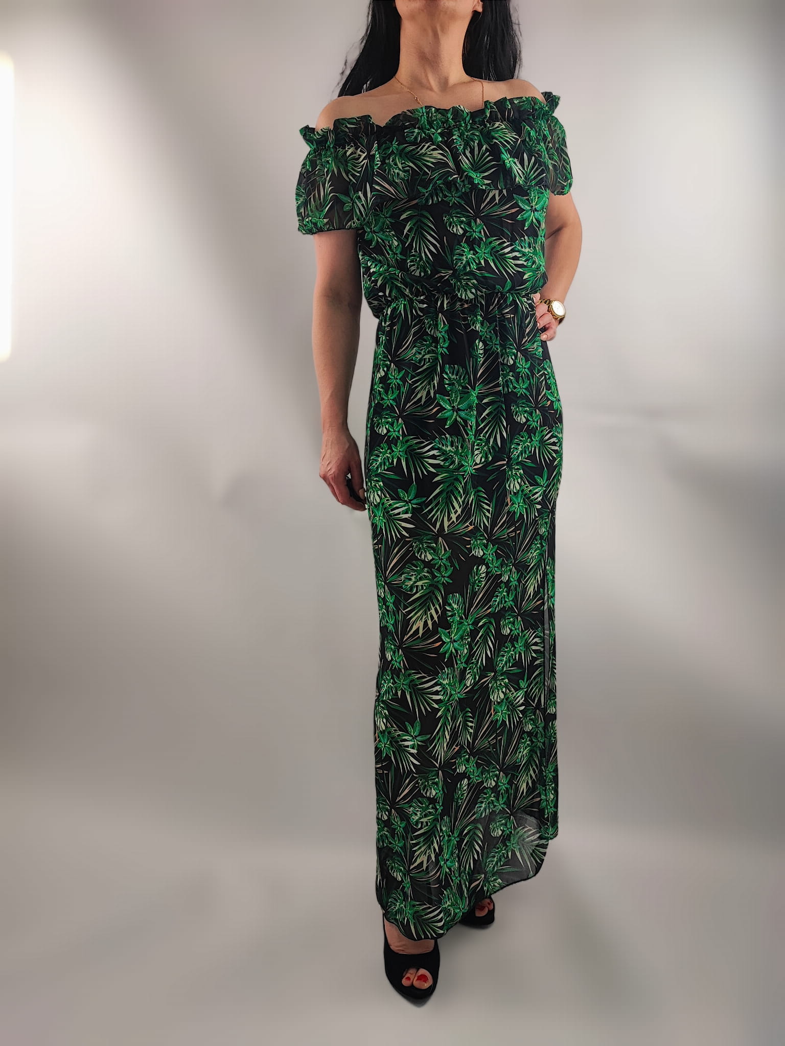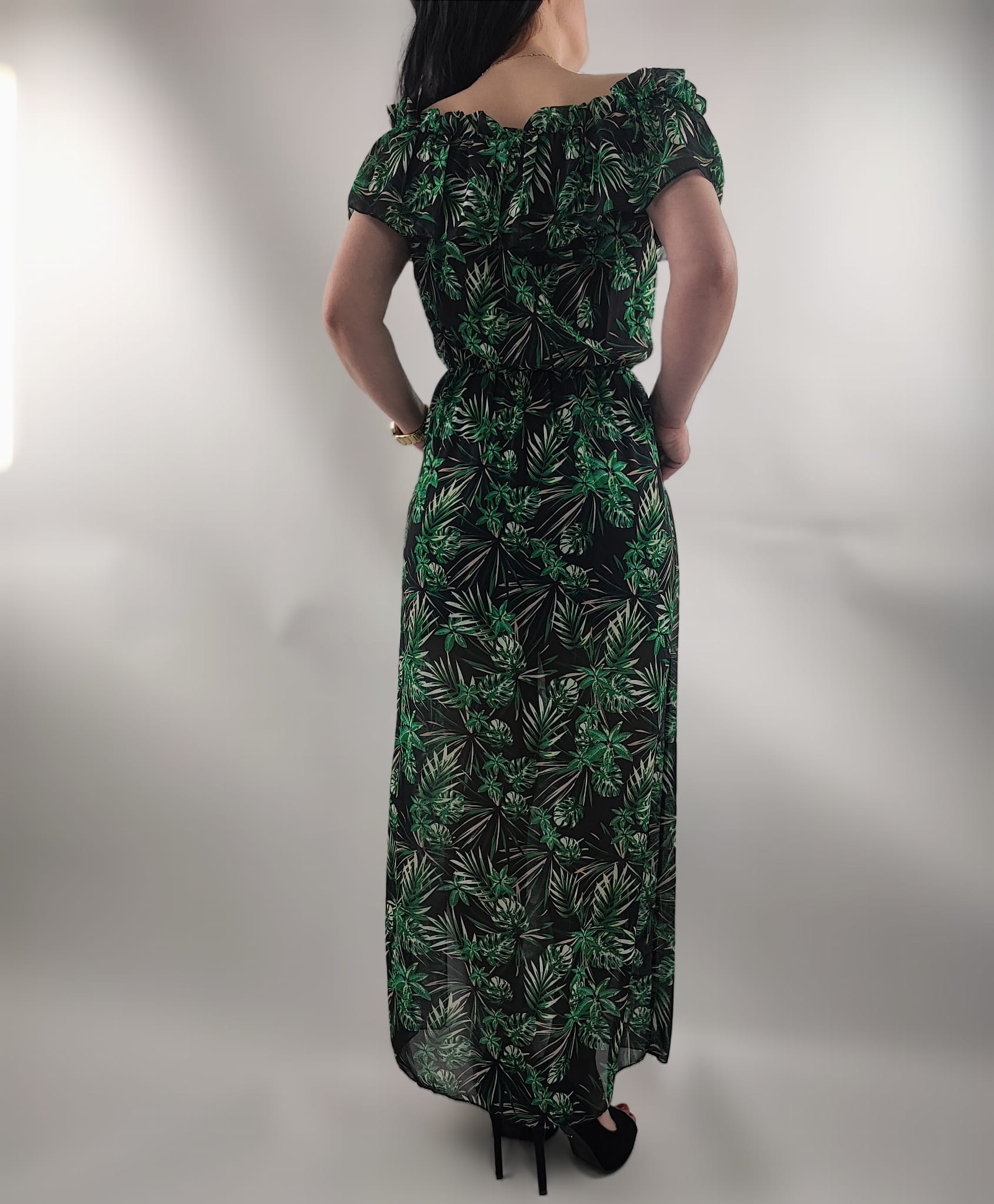 Sukienka Hiszpanka Szyfonowa z Rozporkiem Liście Uniwersalna