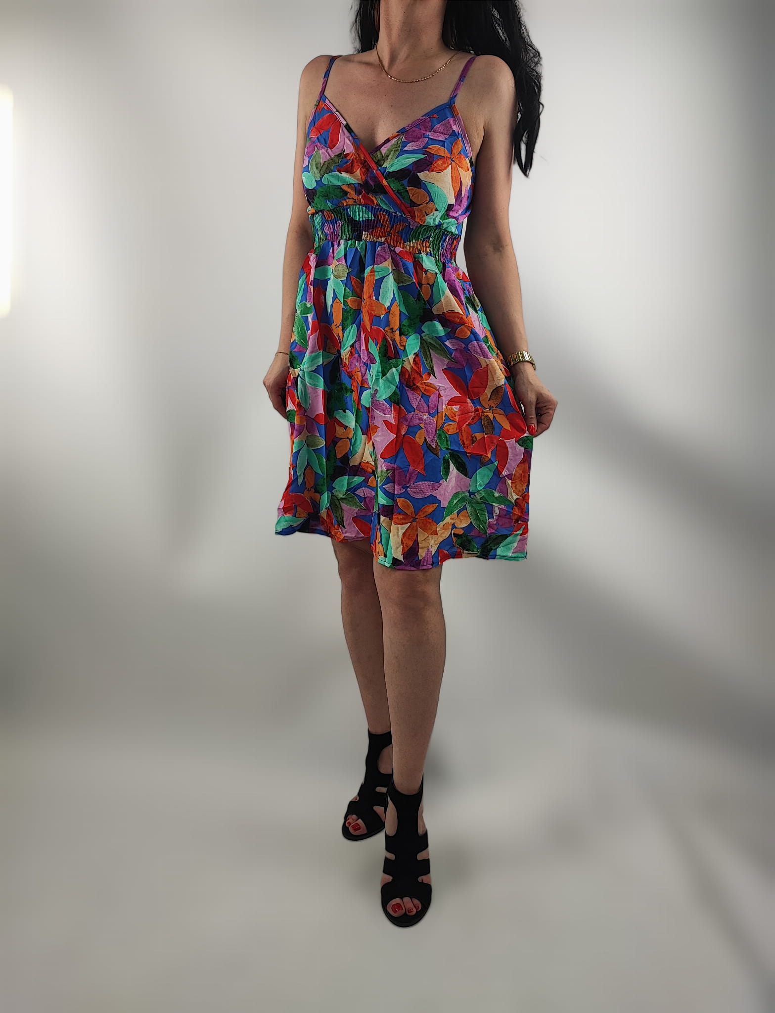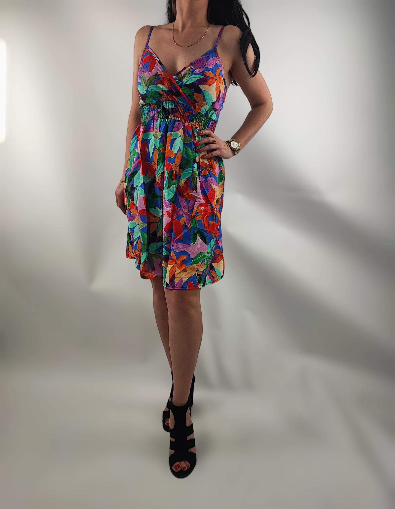 Sukienka Letnia Cienkie Ramiączka Kwiaty Mix Wzór 5