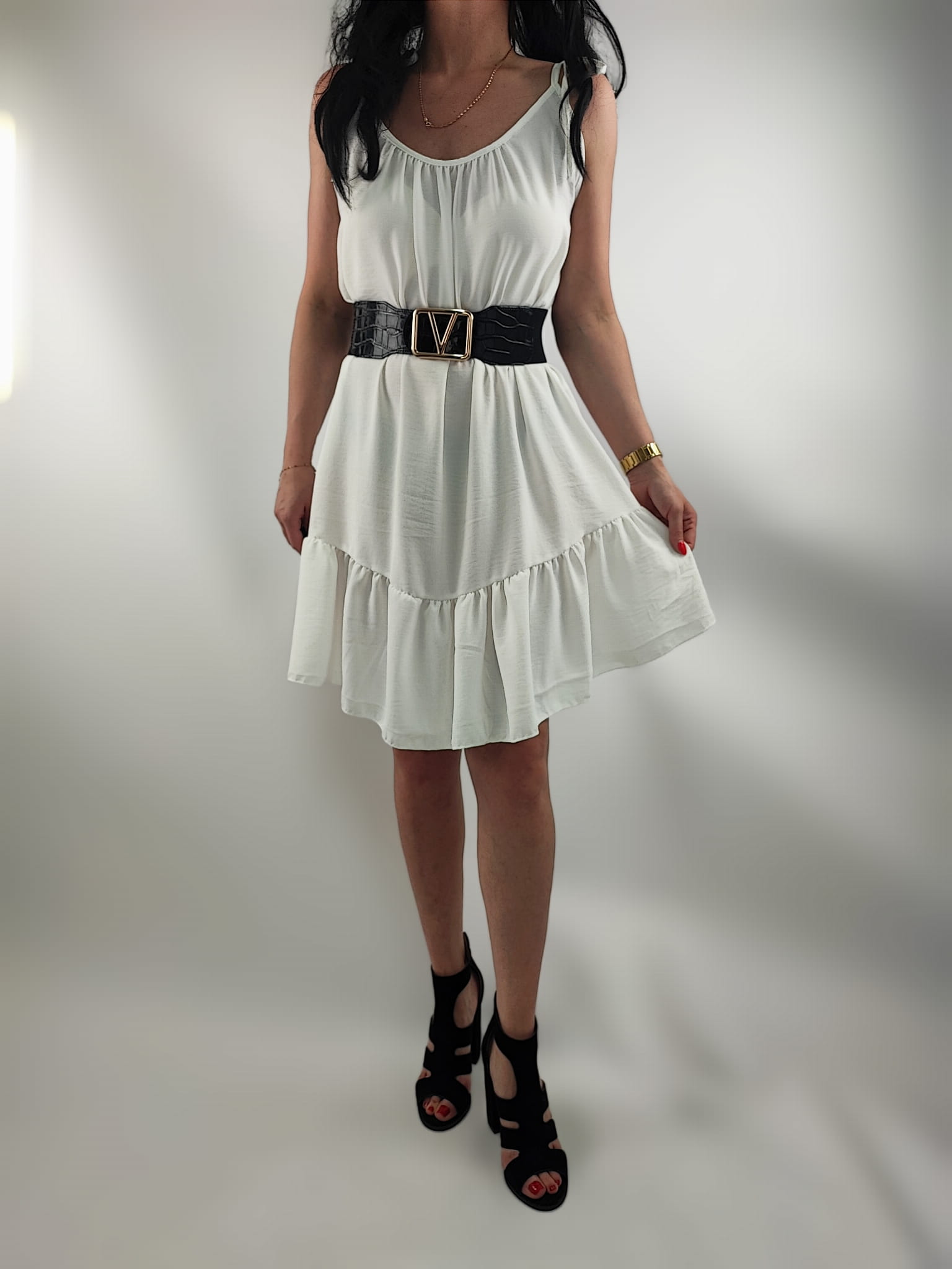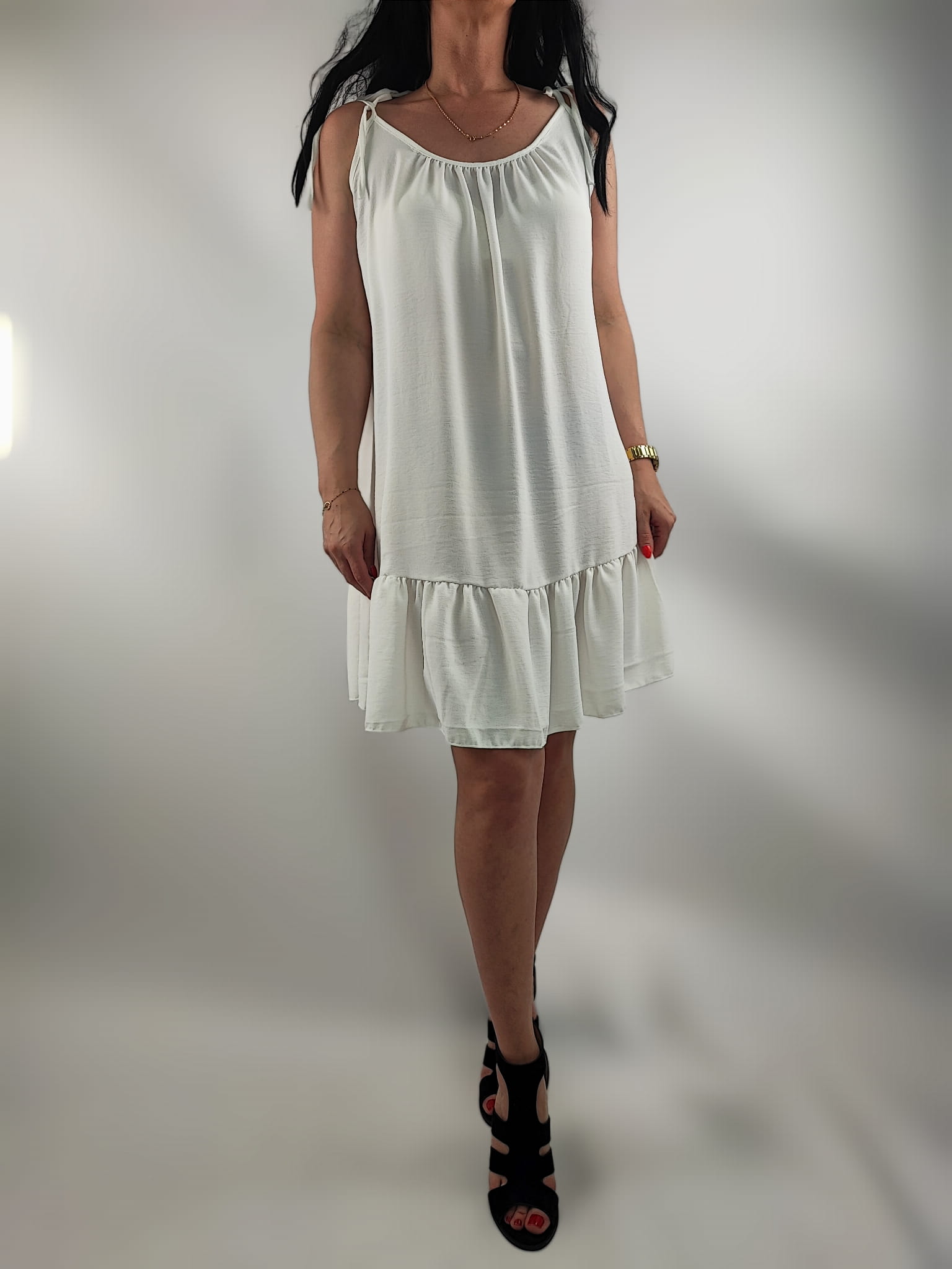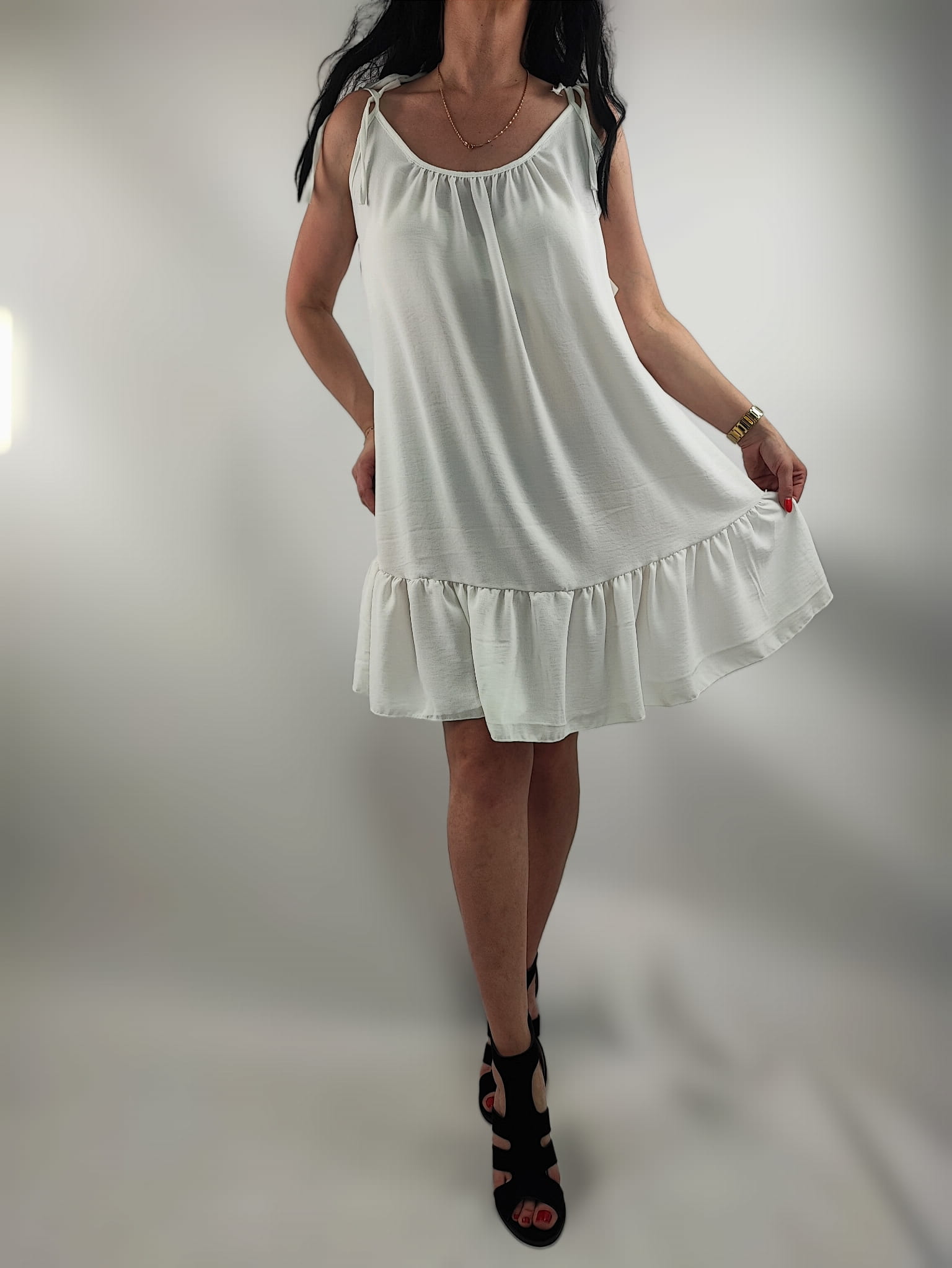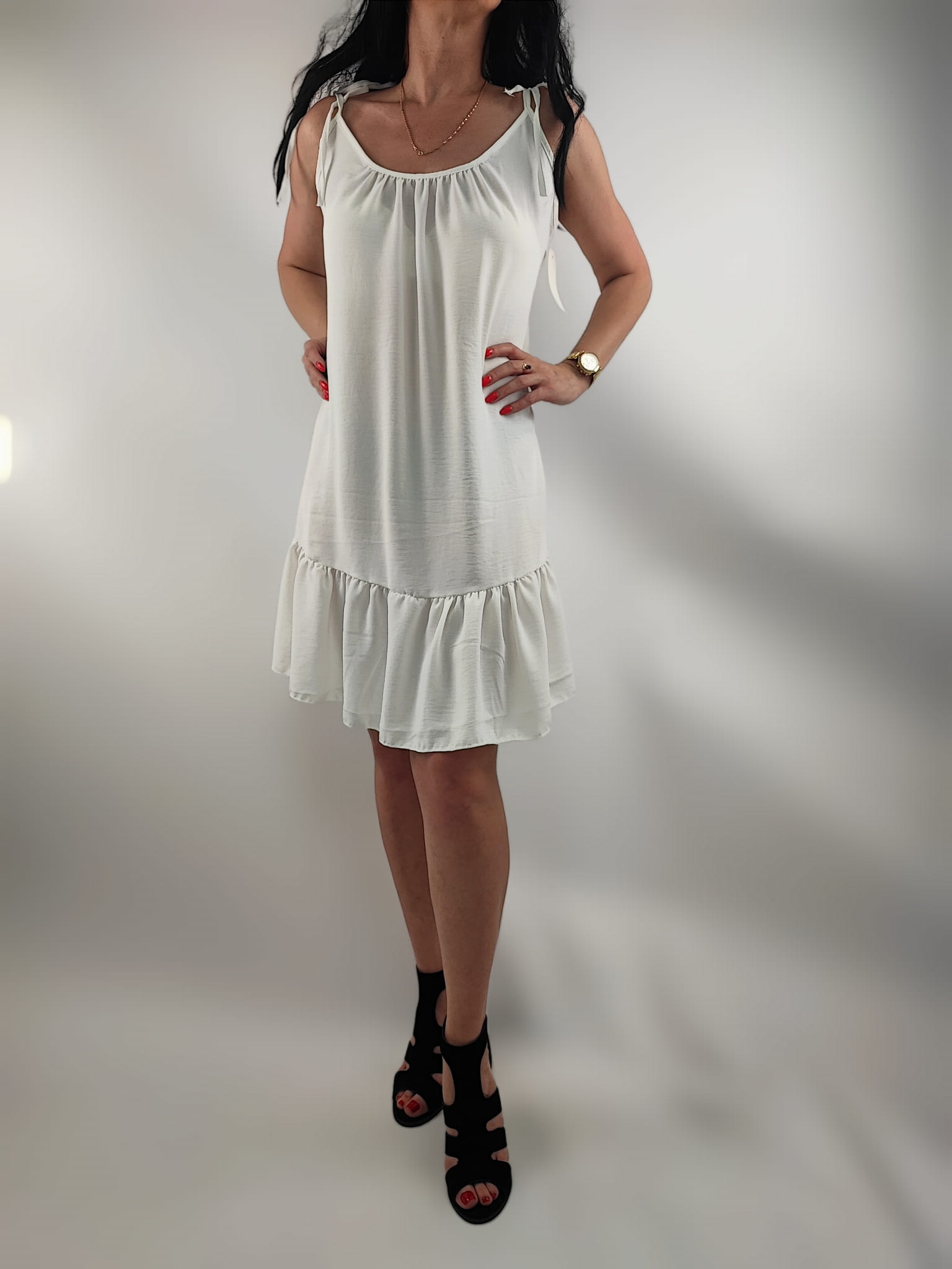 Sukienka Na Ramiączkach Luźna Falbana Biała Uniwersalna