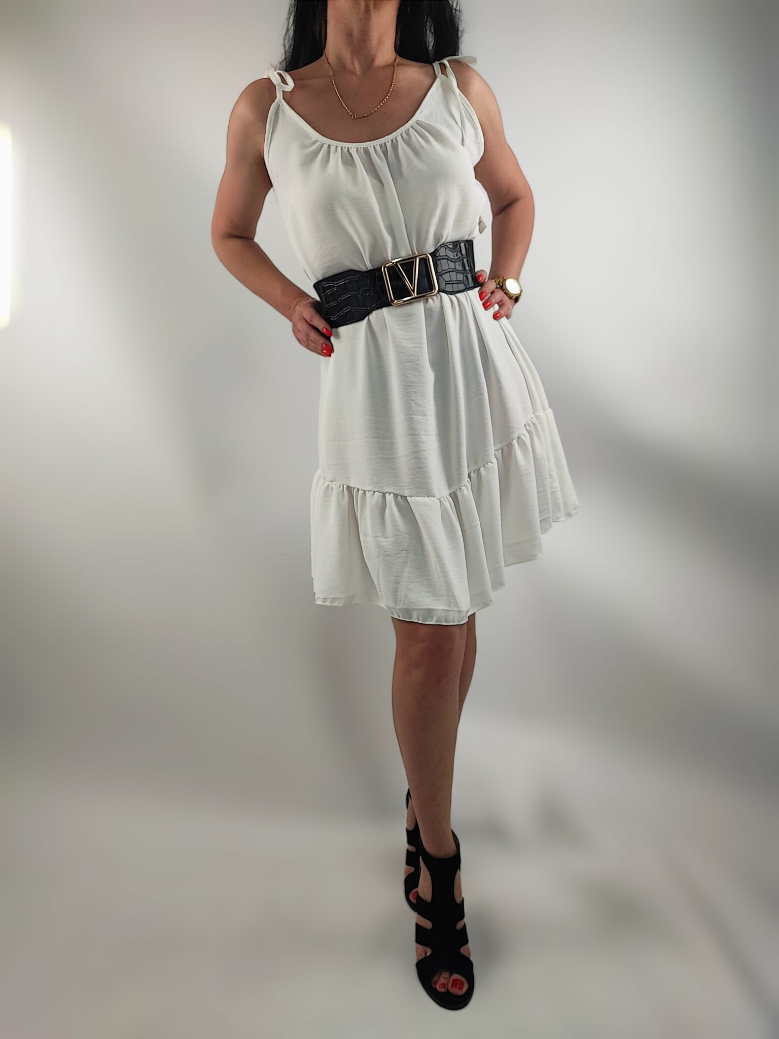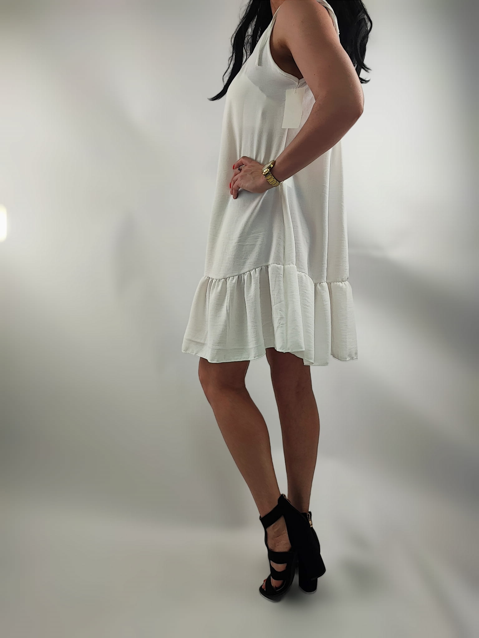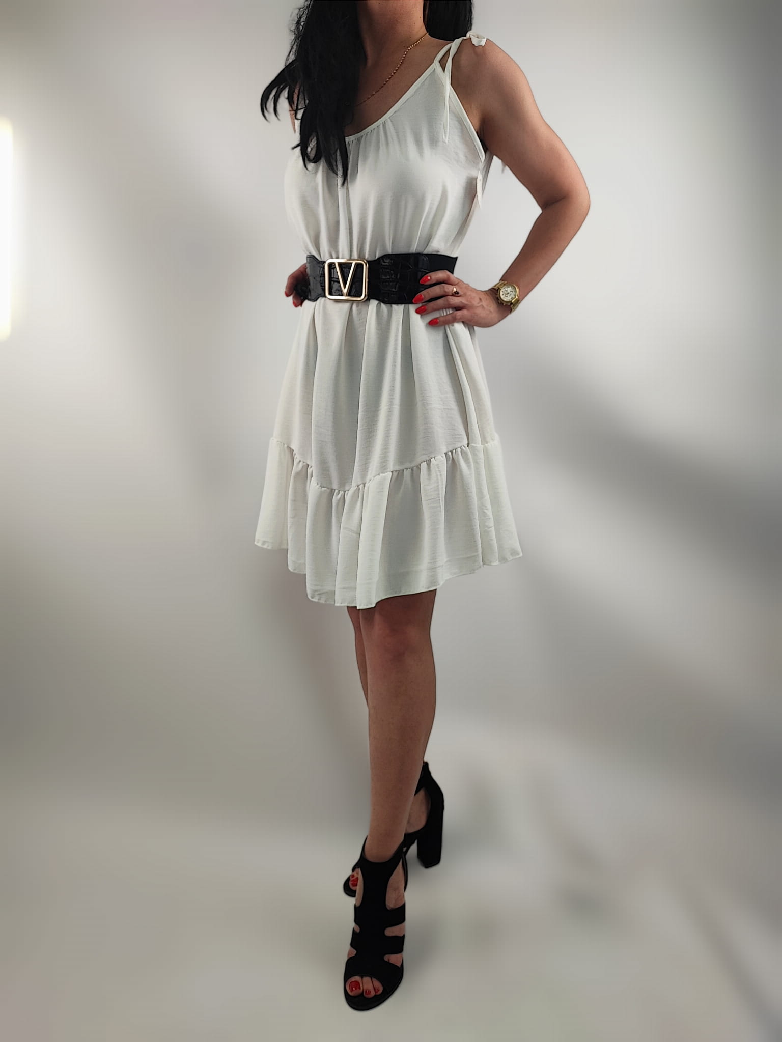 Sukienka Na Ramiączkach Luźna Falbana Biała Uniwersalna