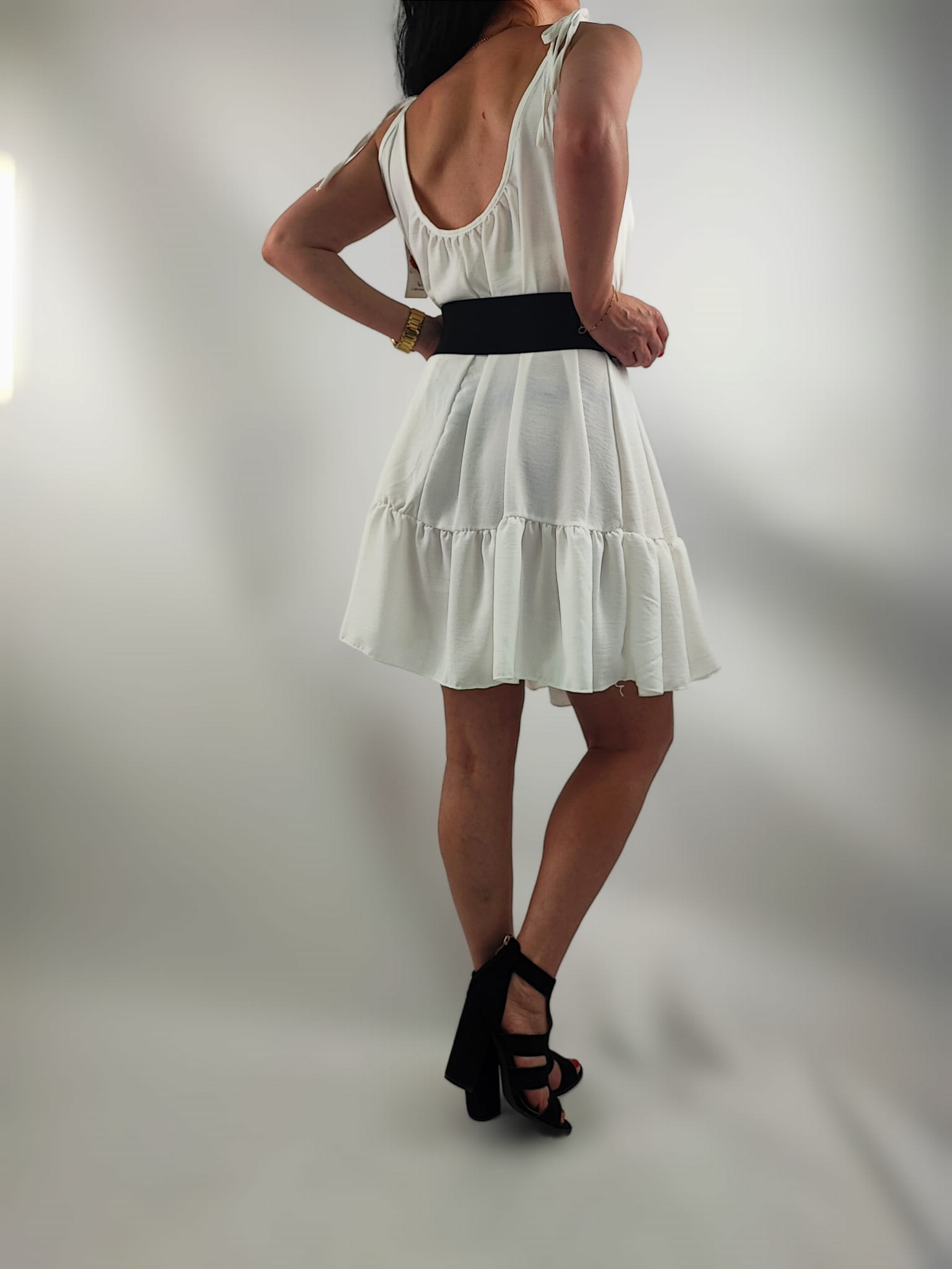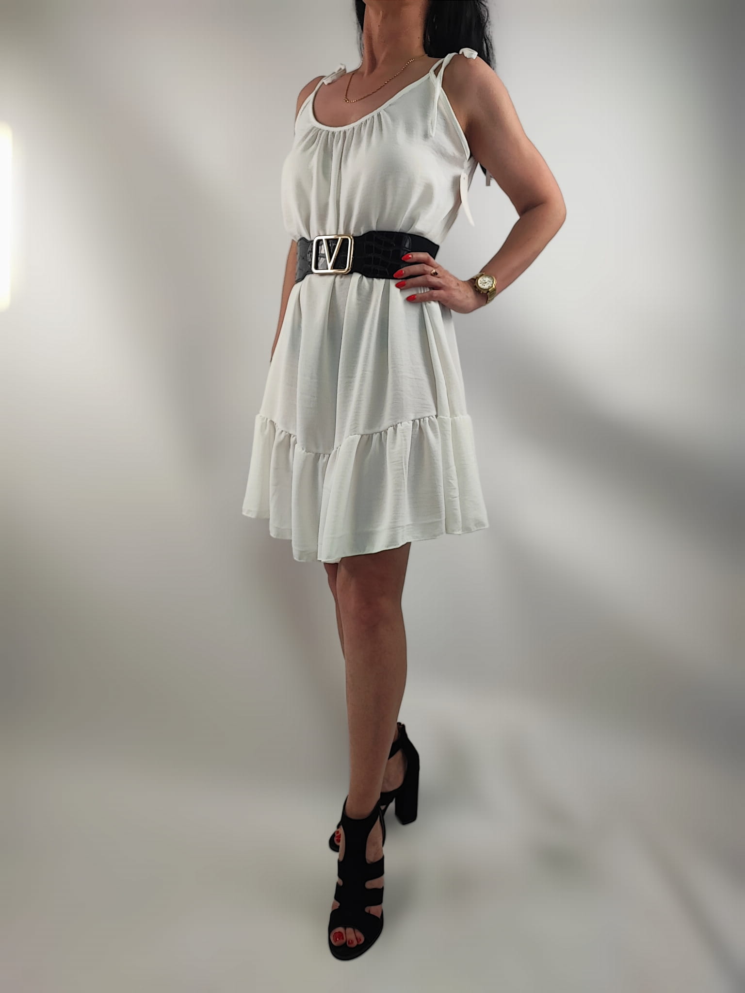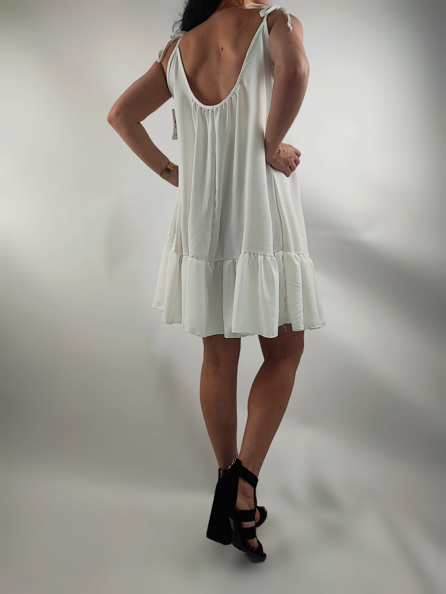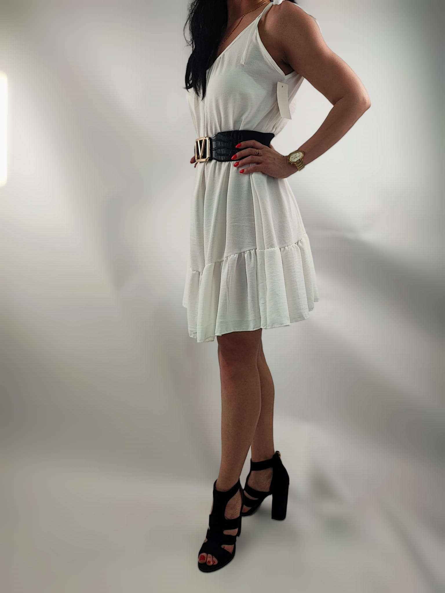 Sukienka Na Ramiączkach Luźna Falbana Biała Uniwersalna