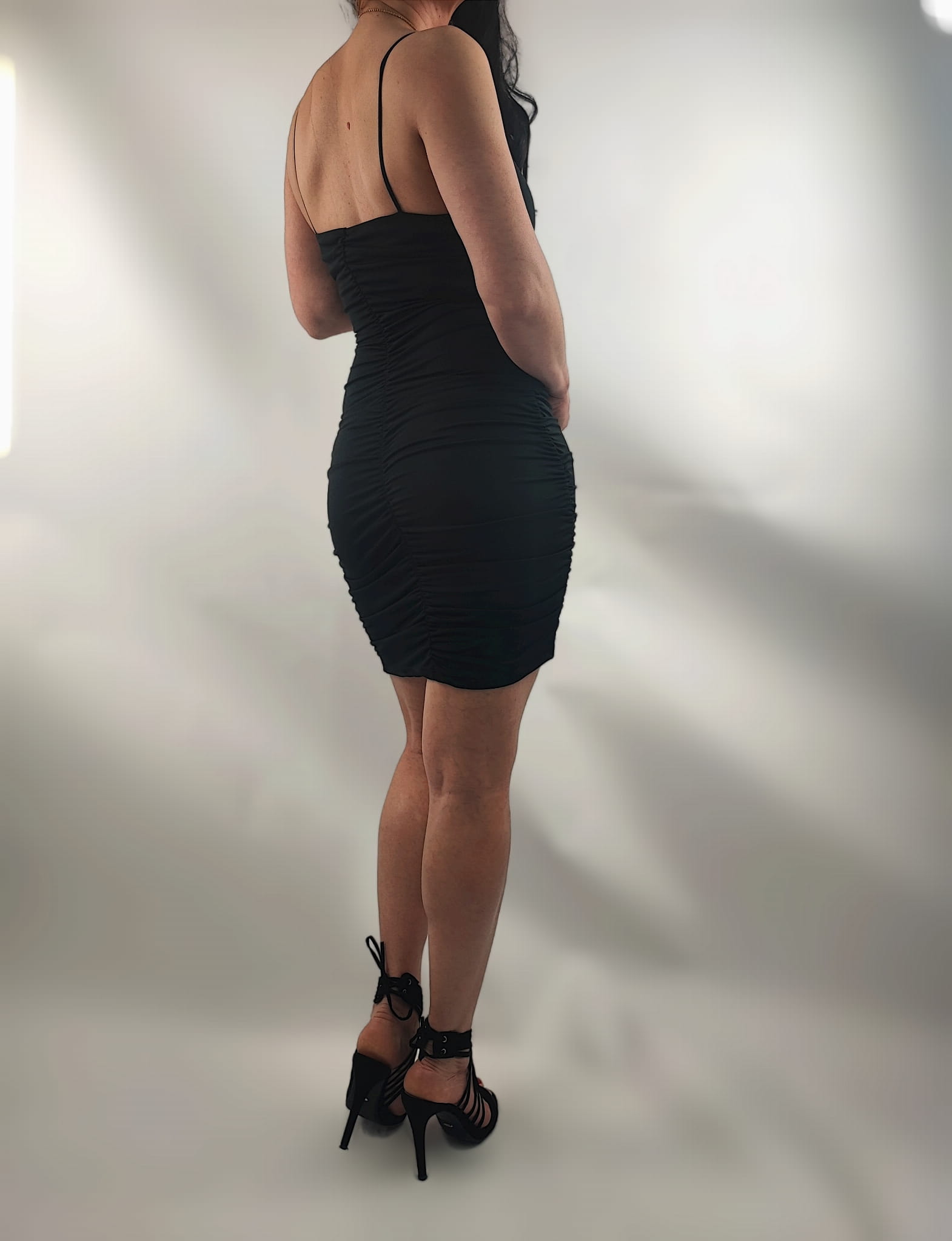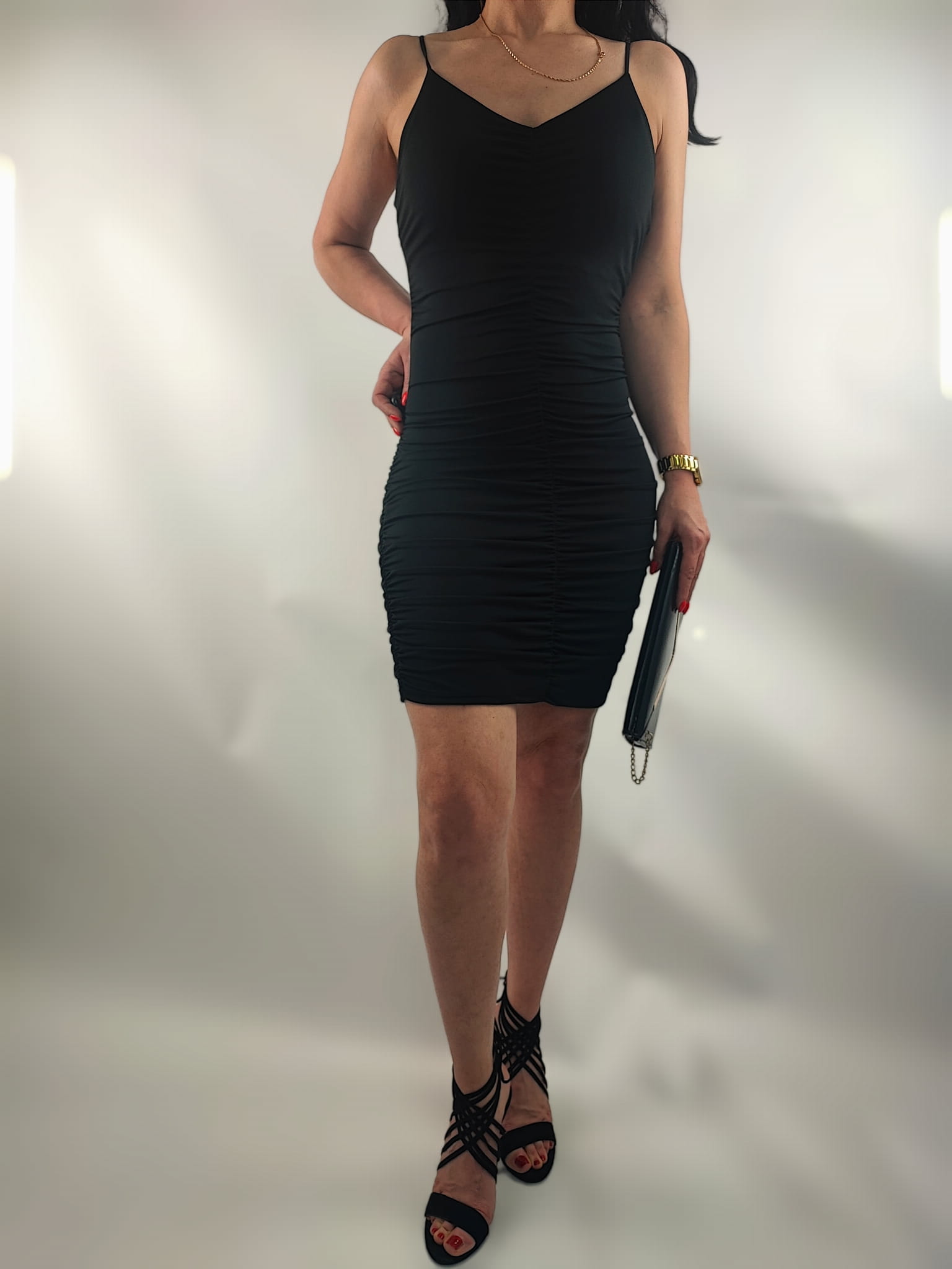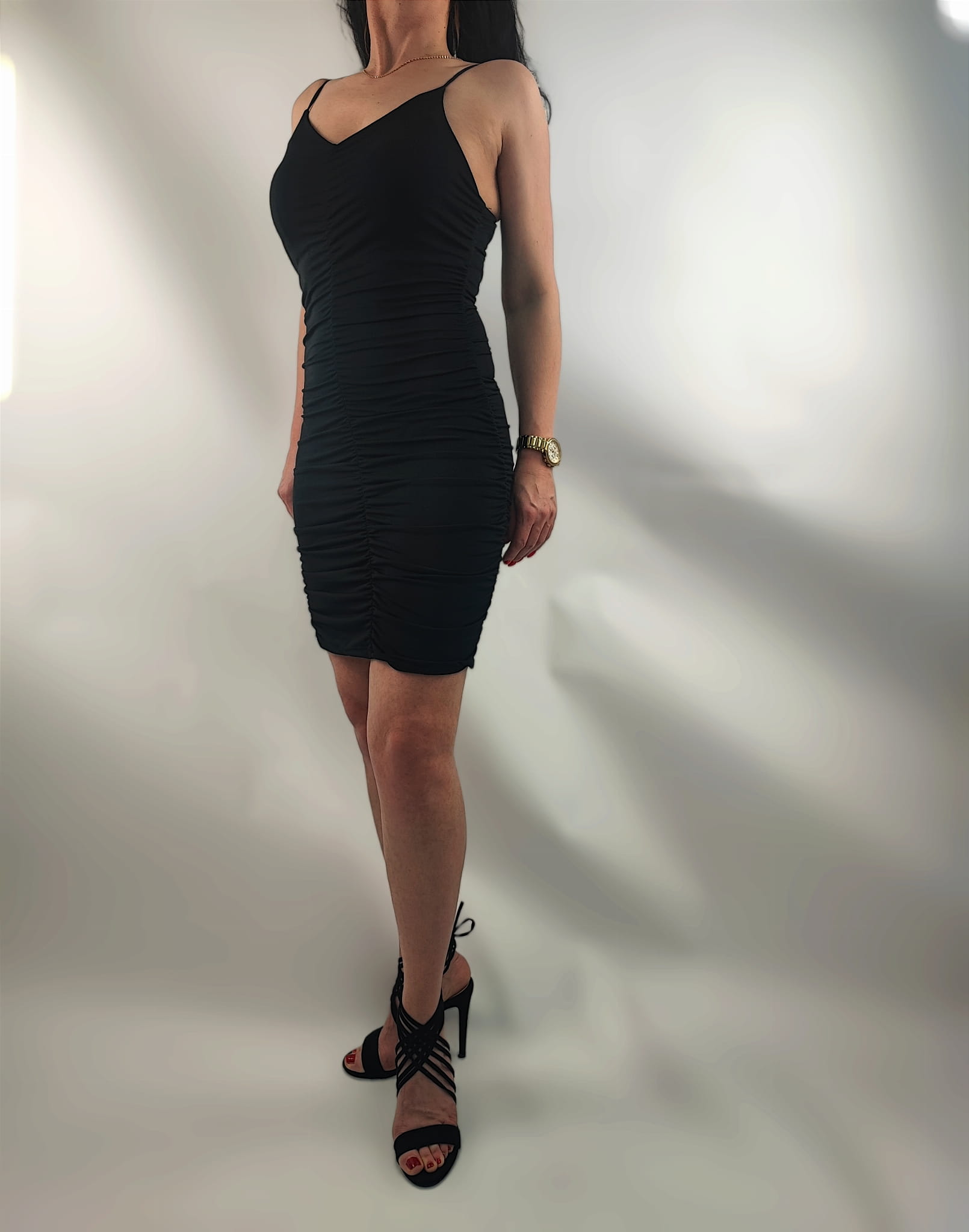 Sukienka Na Ramiączkach Marszczona Mini CzarnaUniwersalna
