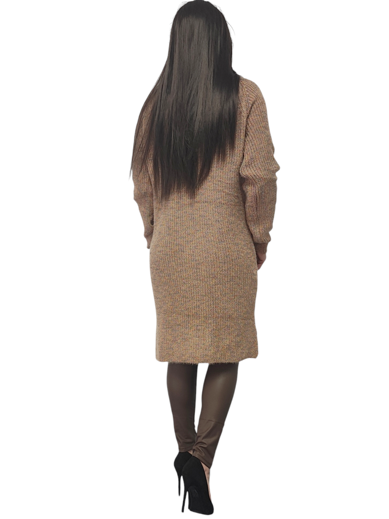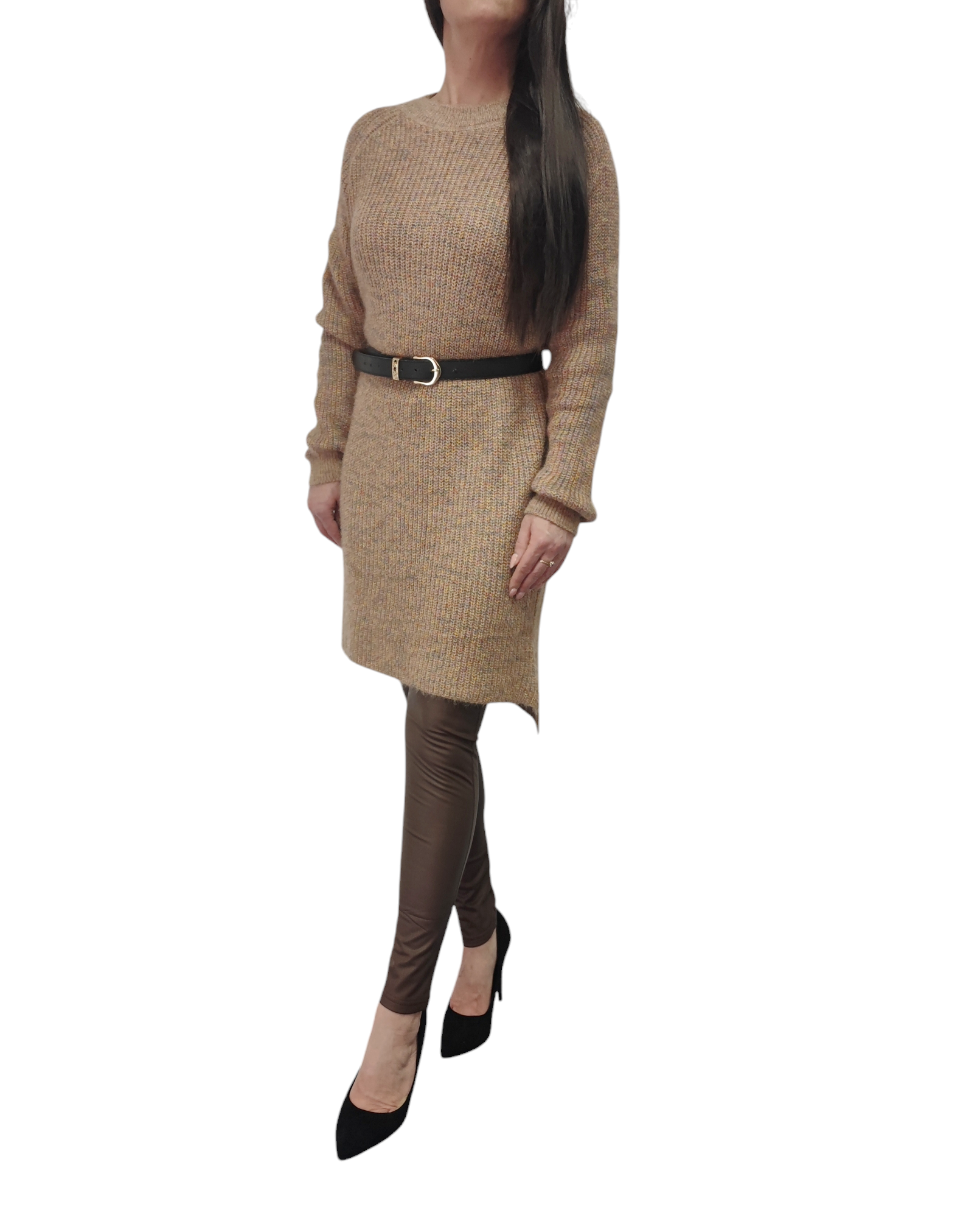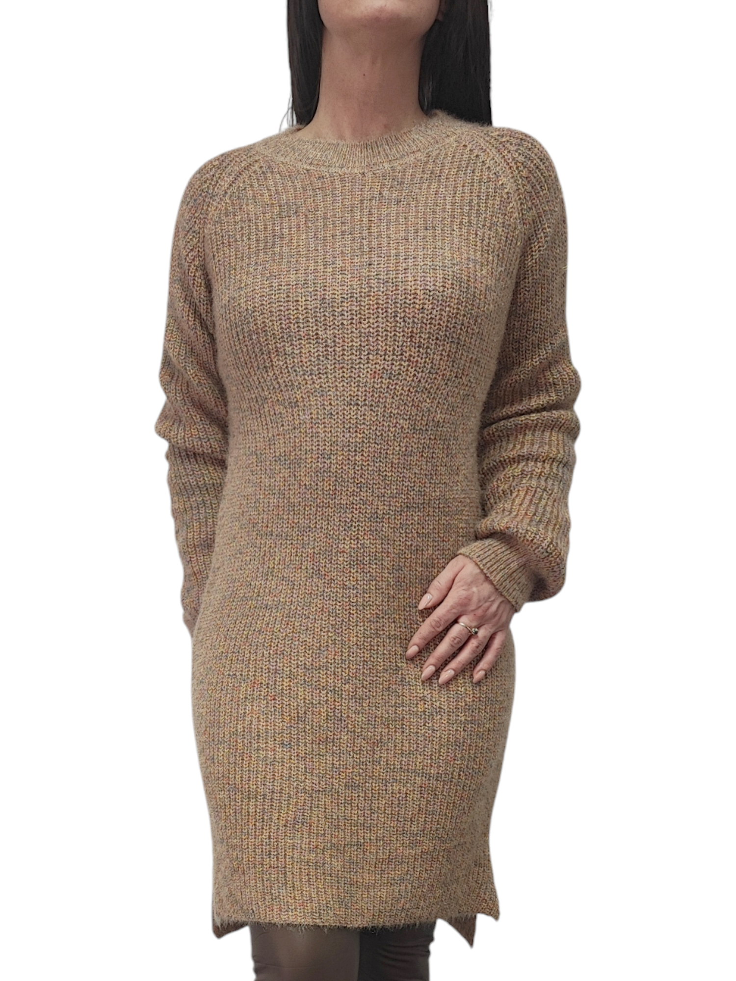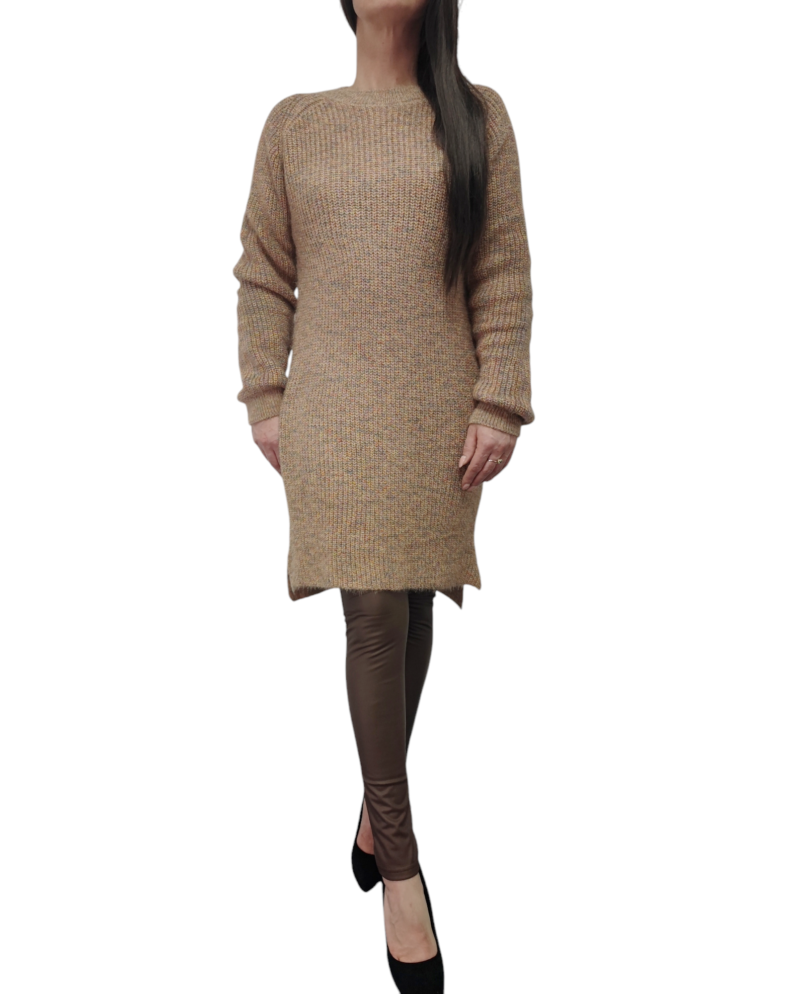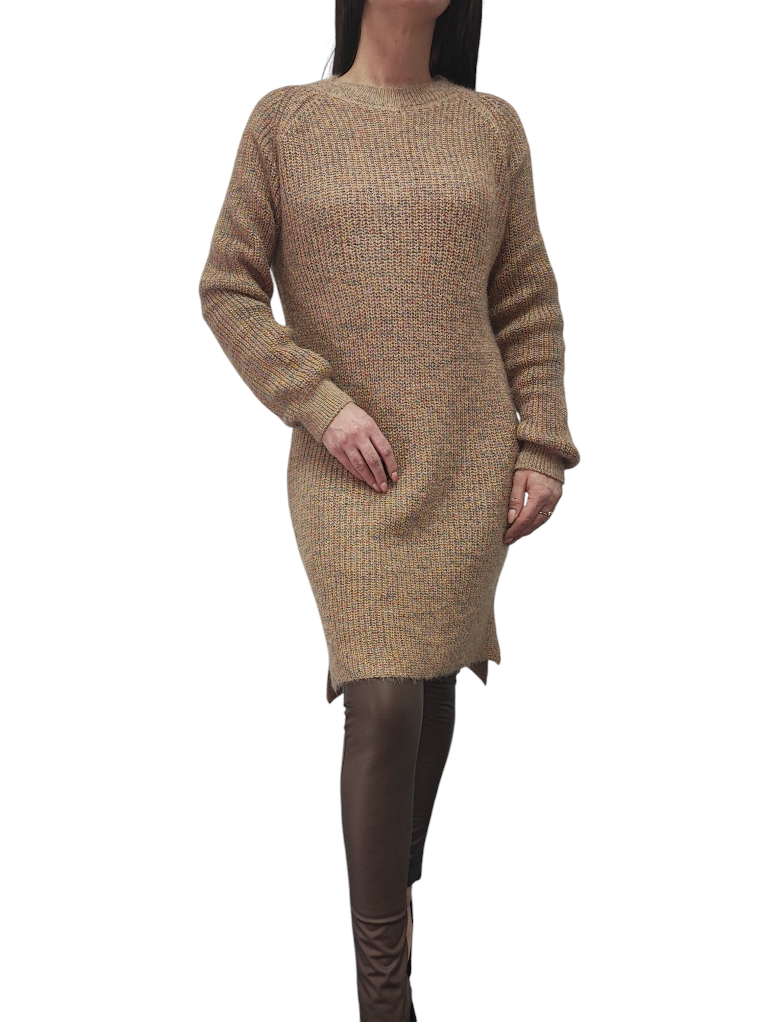 Sukienka Tunika Sweterkowa Ciepła Luźna Długa Na Prezent Camel Melanż M-XL
