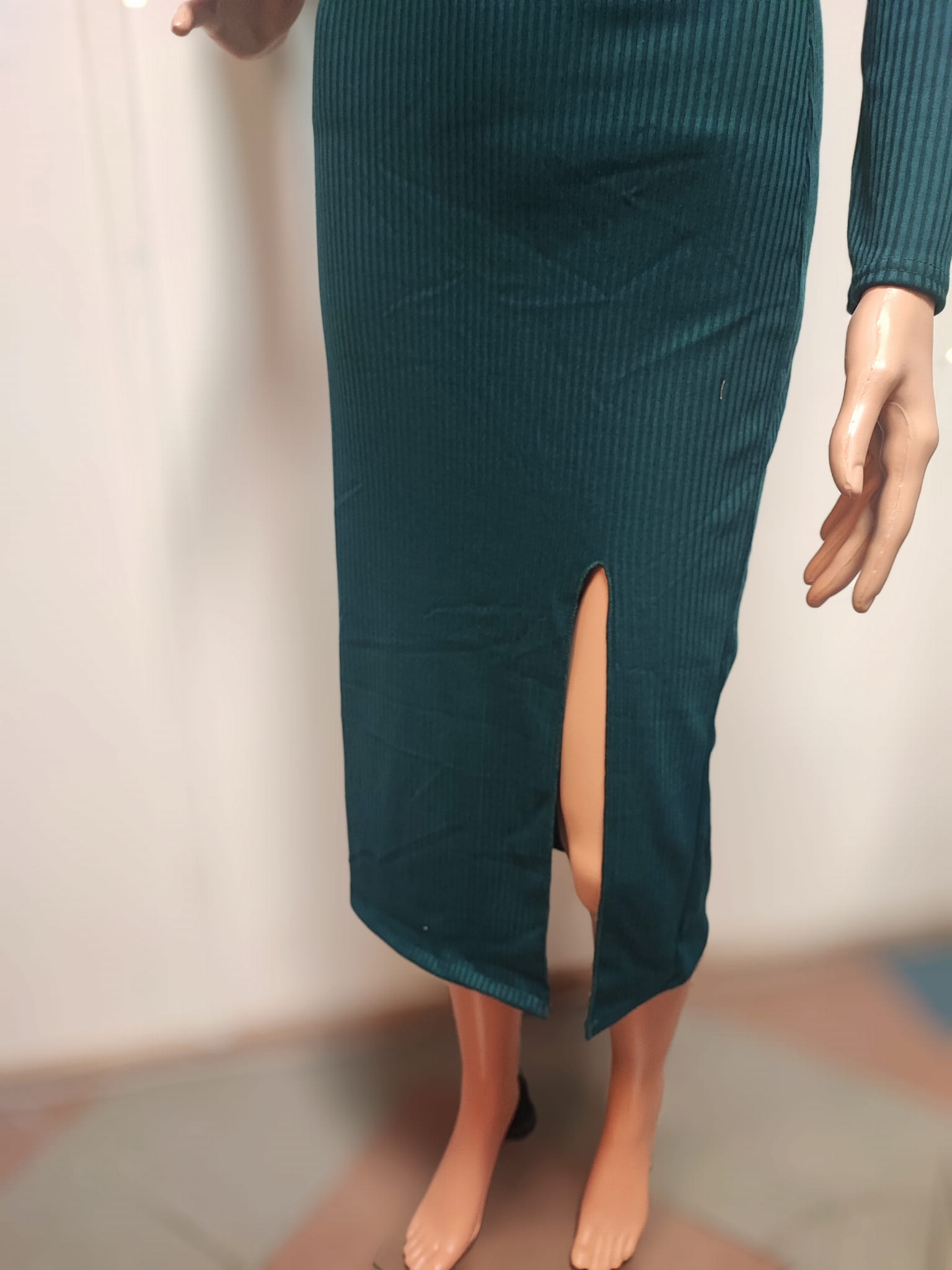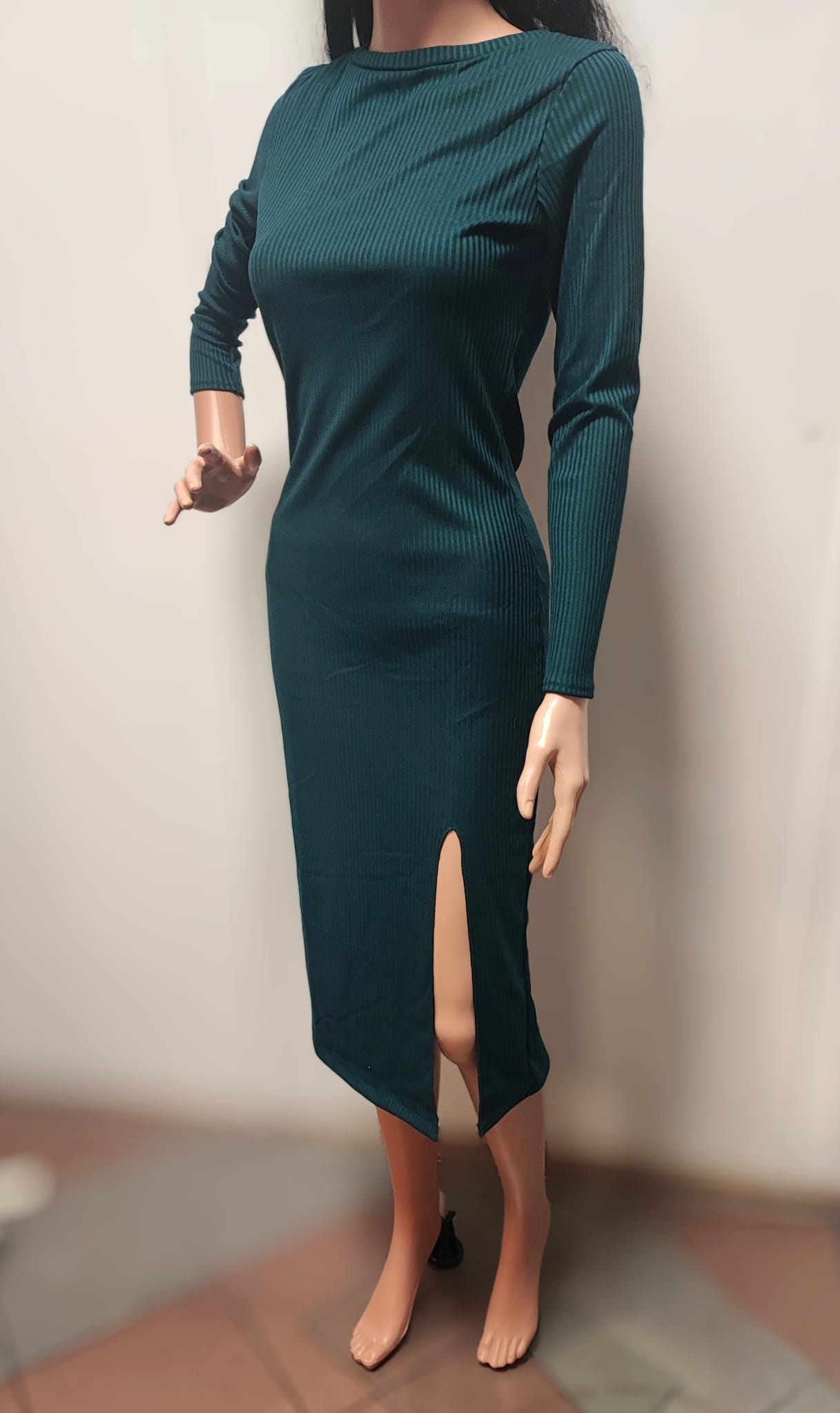 Sukienka dzianinowa bawełniana z eleganckim rozporkiem .Materiał cienki, miły w dotyku, elastyczny, idealnie dopasowuję się do figury.