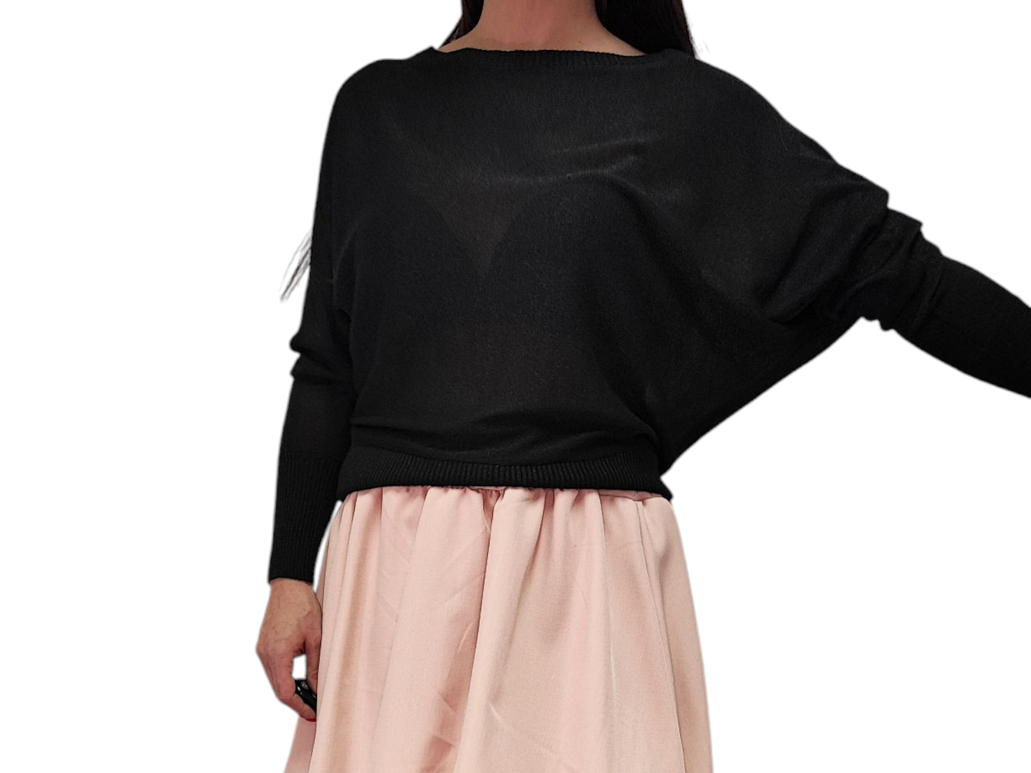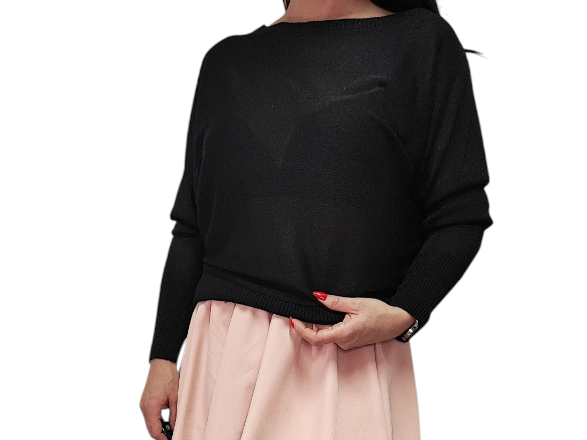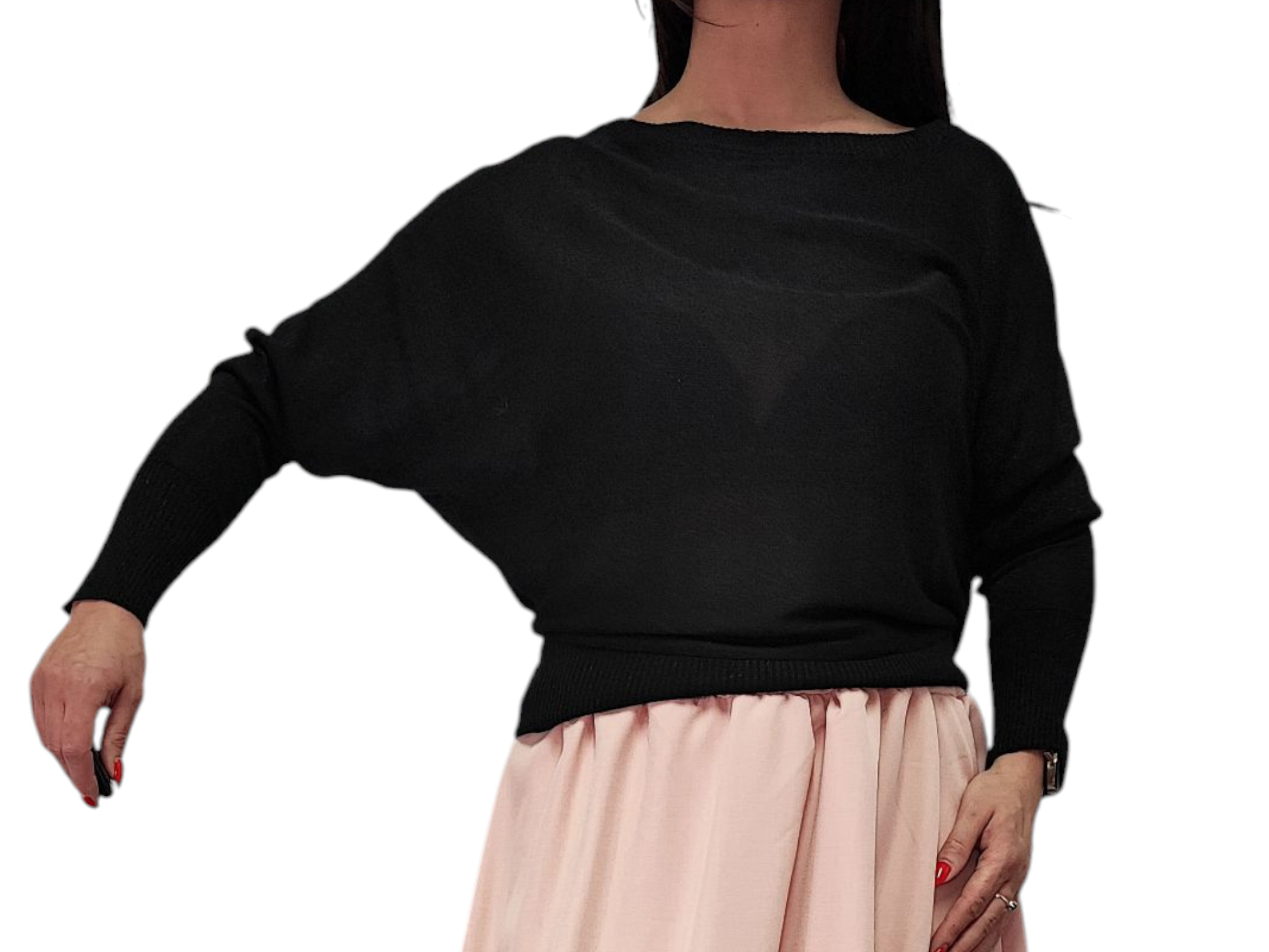 Sweter Damski Bluzka Nietoperz Luźny Cienki Wiskoza Wiosna Lato Czarny