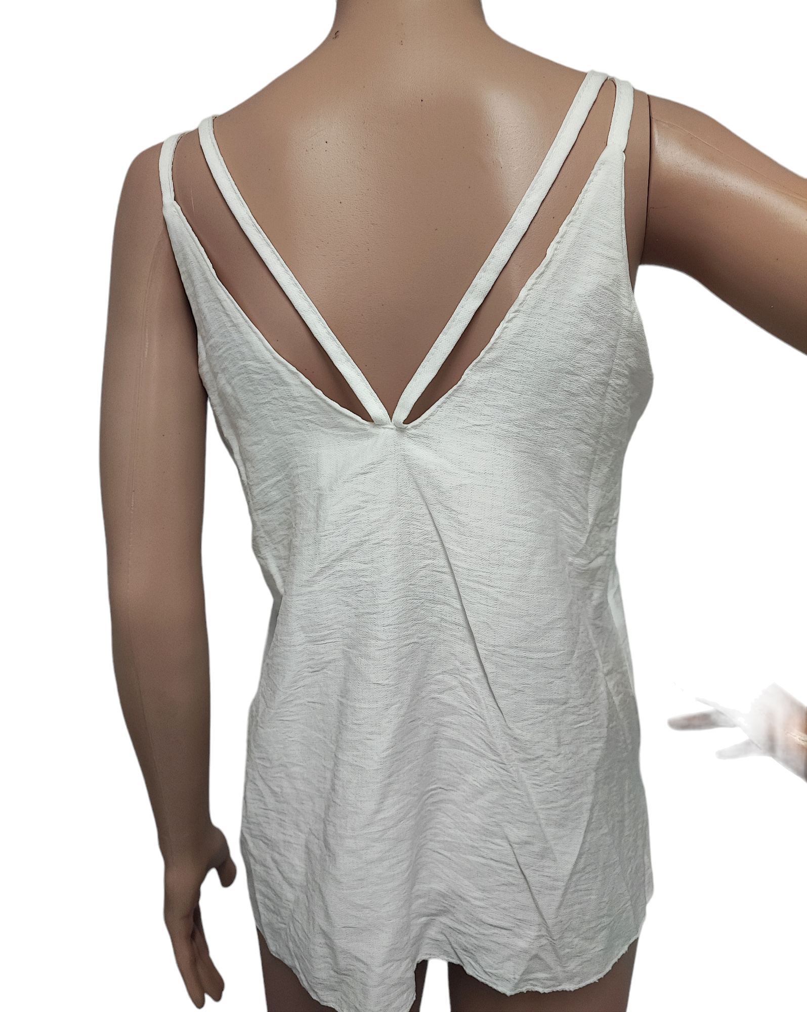 Top Damski Italy Bluzka Podwójne Ramiączka Uniwersalny Jasny Kremowy S,M