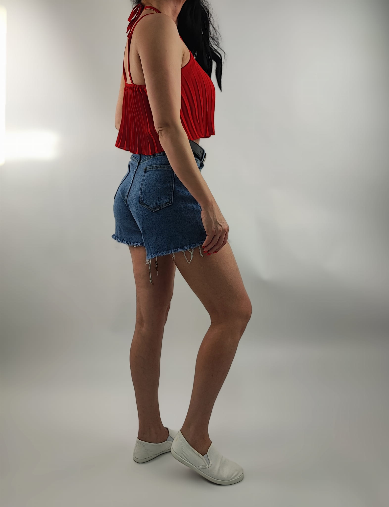 Delikatny, kobiecy plisowany Top o krótszym modnym kroju.