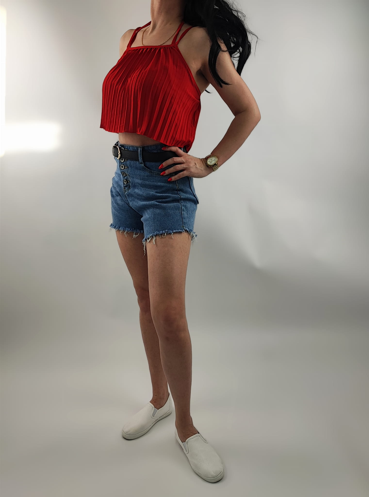 Top Damski Plisowany Italy na Ramiączkach Czerwony Uniwersalny