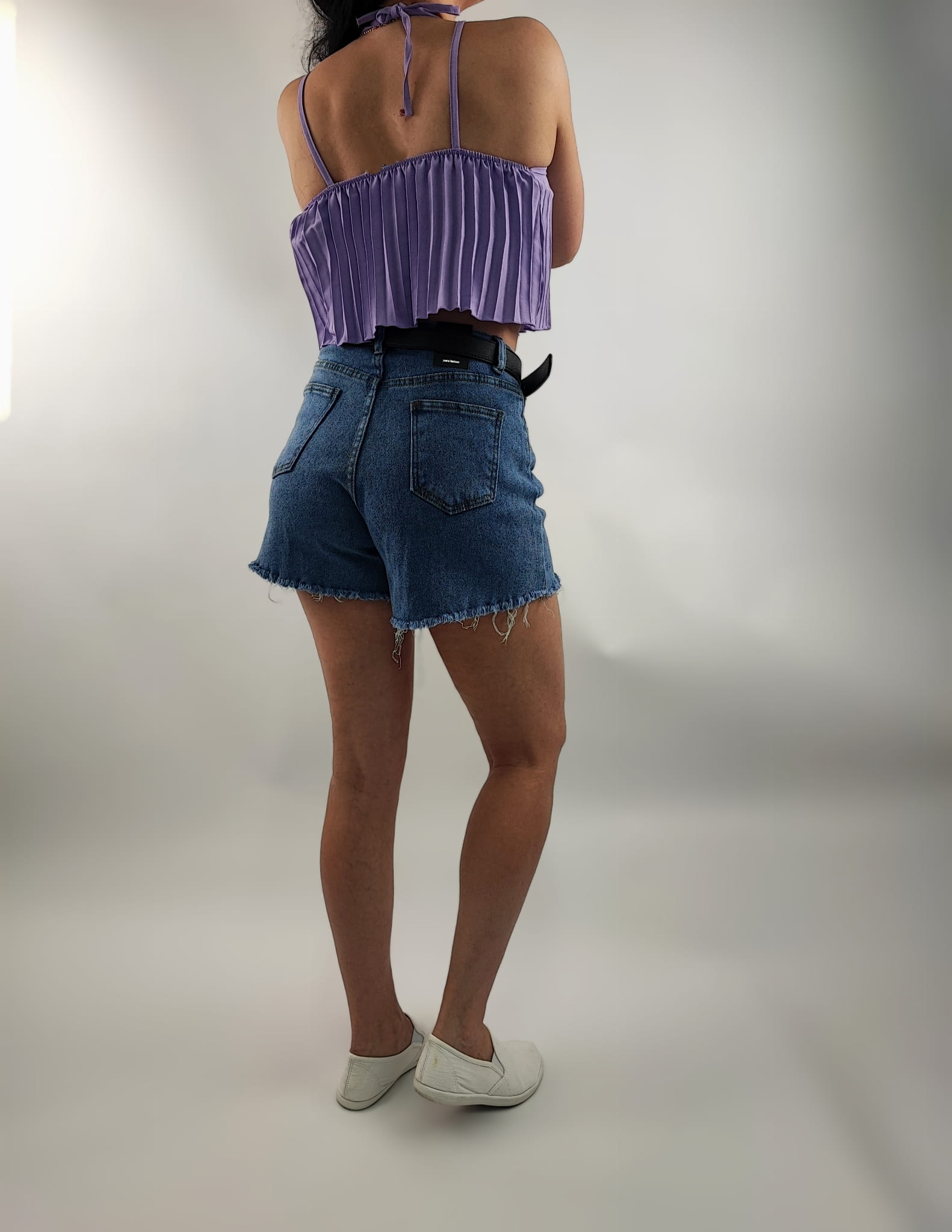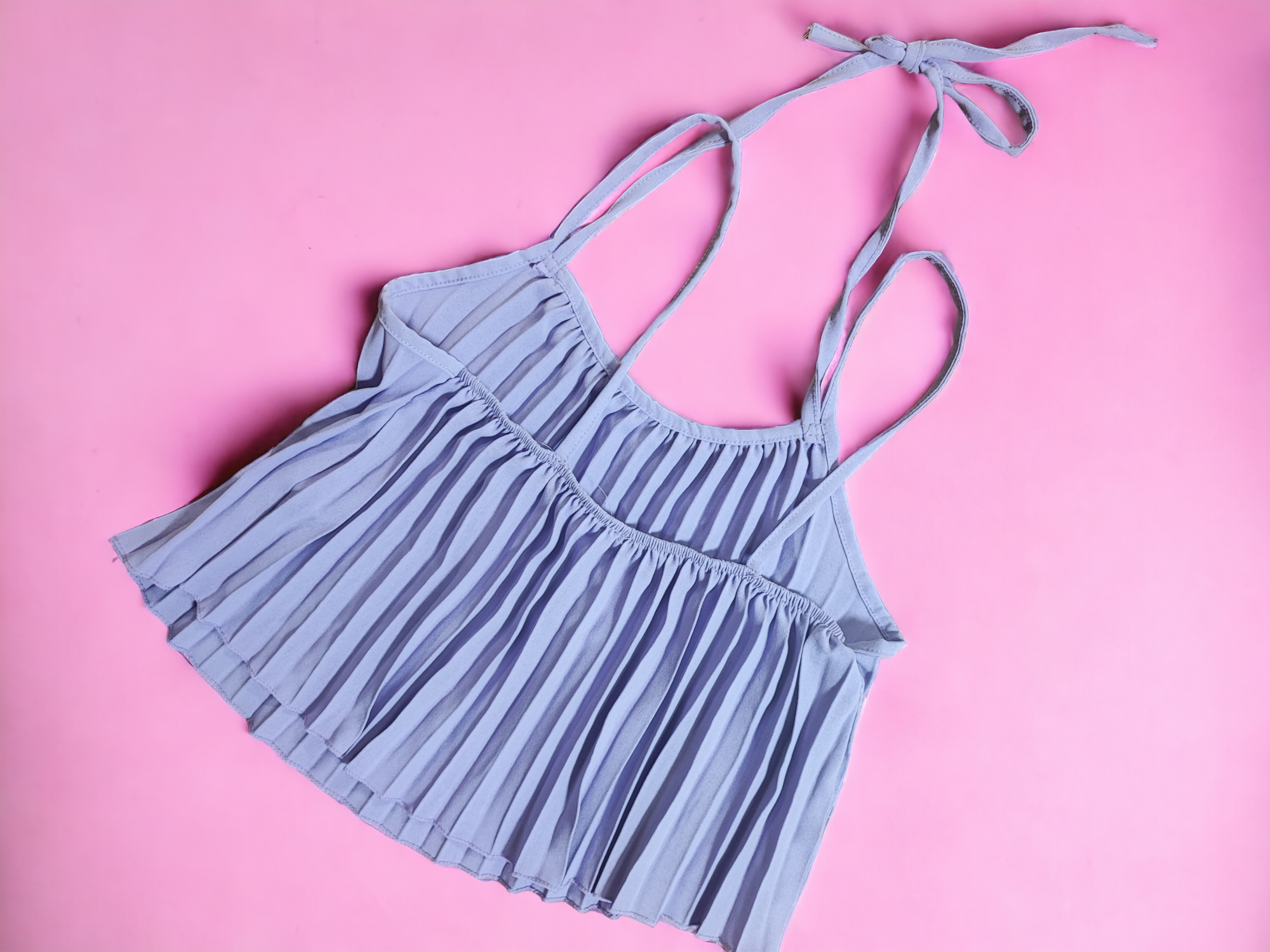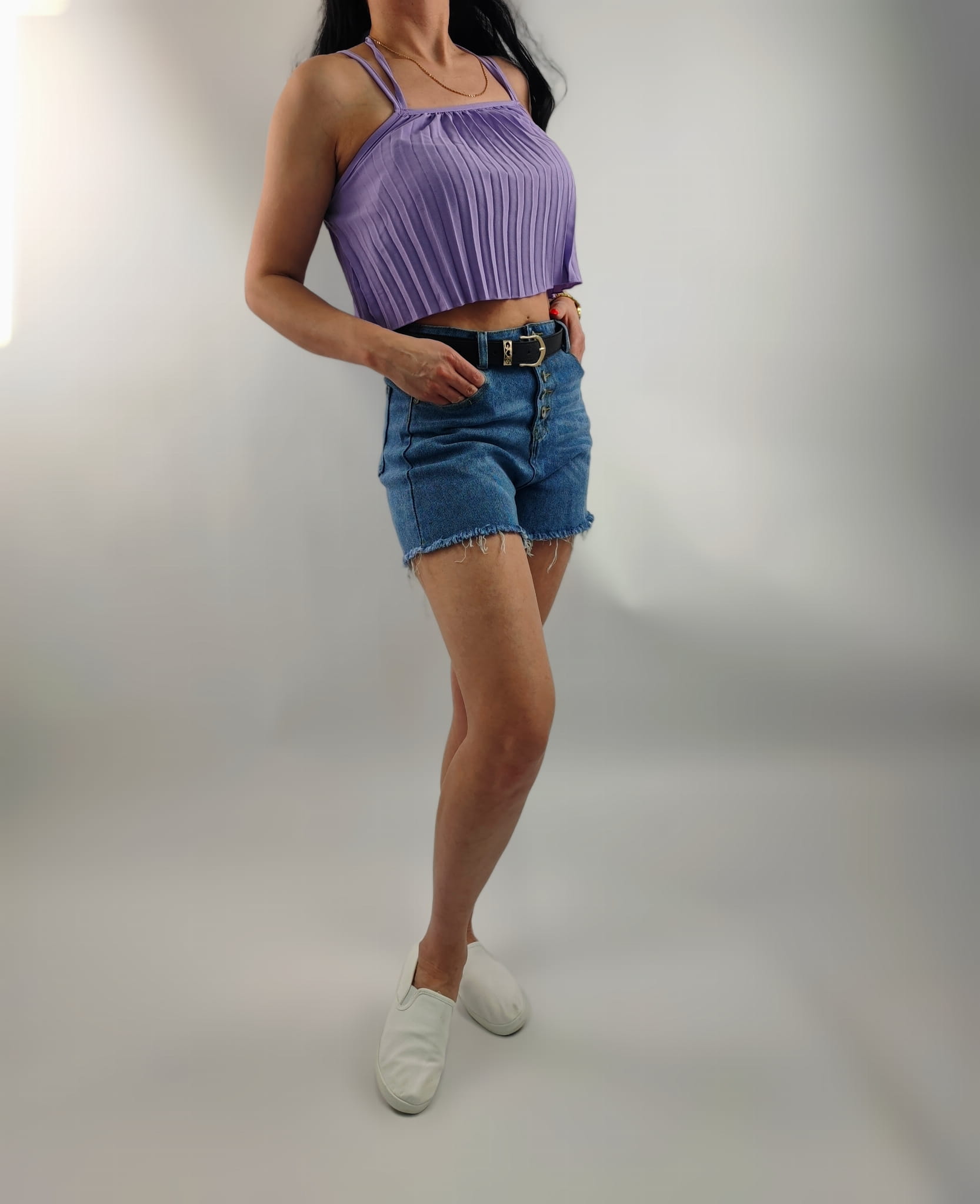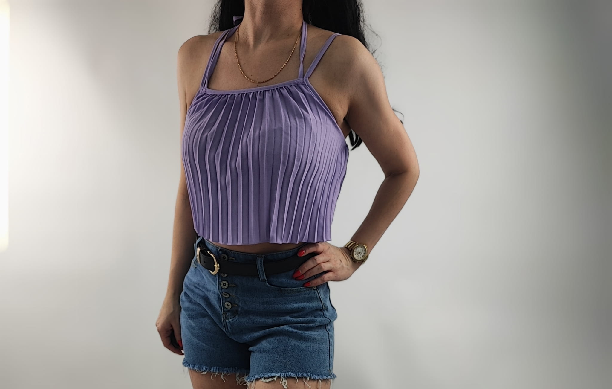 Delikatny, kobiecy plisowany Top o krótszym modnym kroju.