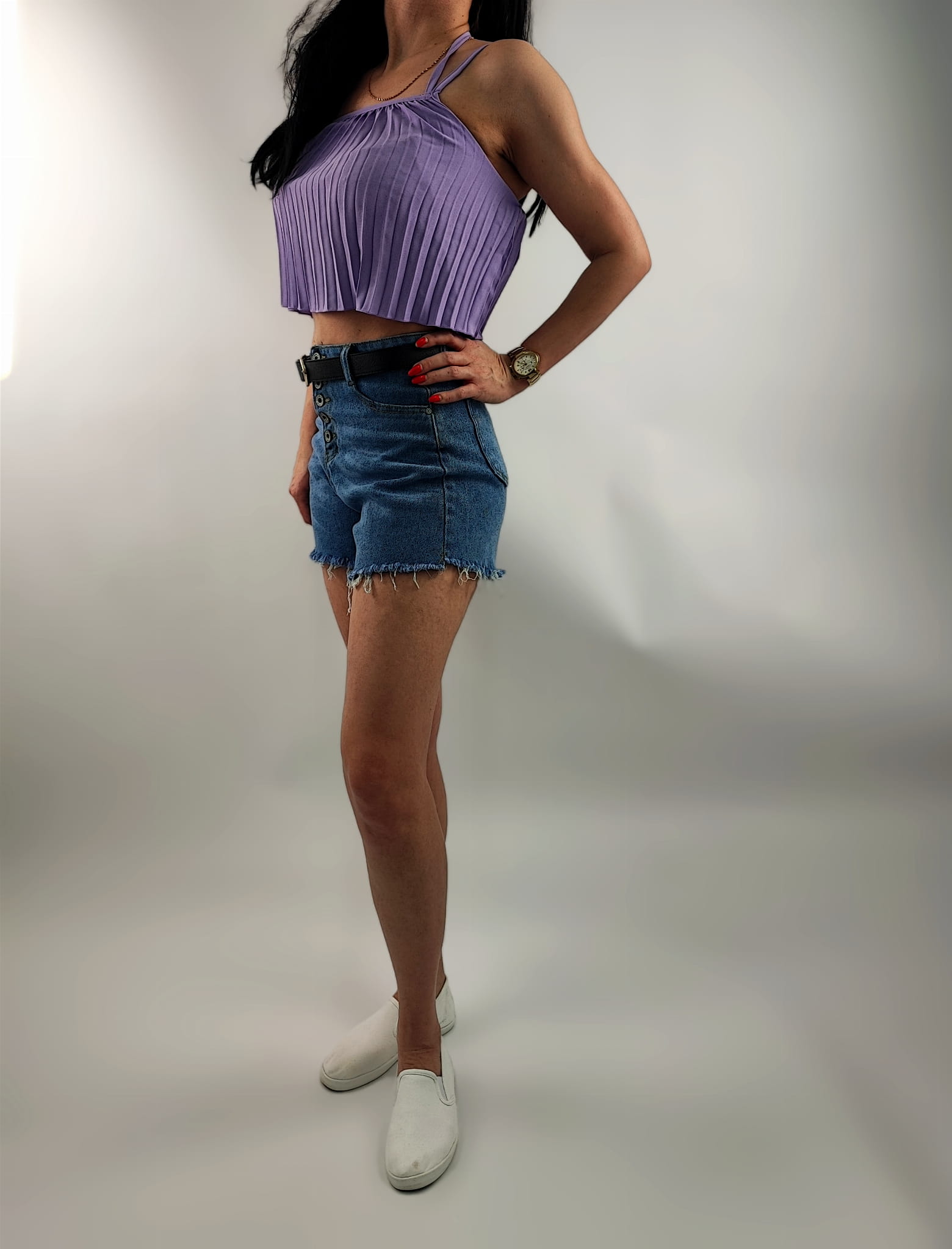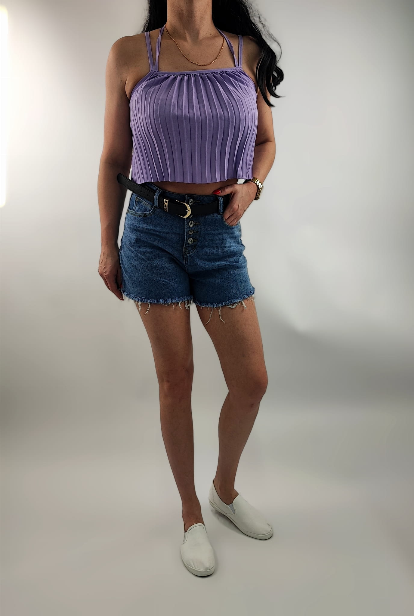 Top Damski Plisowany Italy na Ramiączkach Fiołkowy Uniwersalny