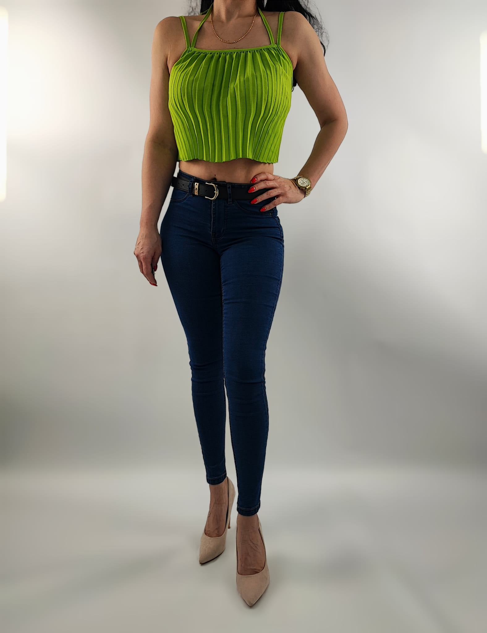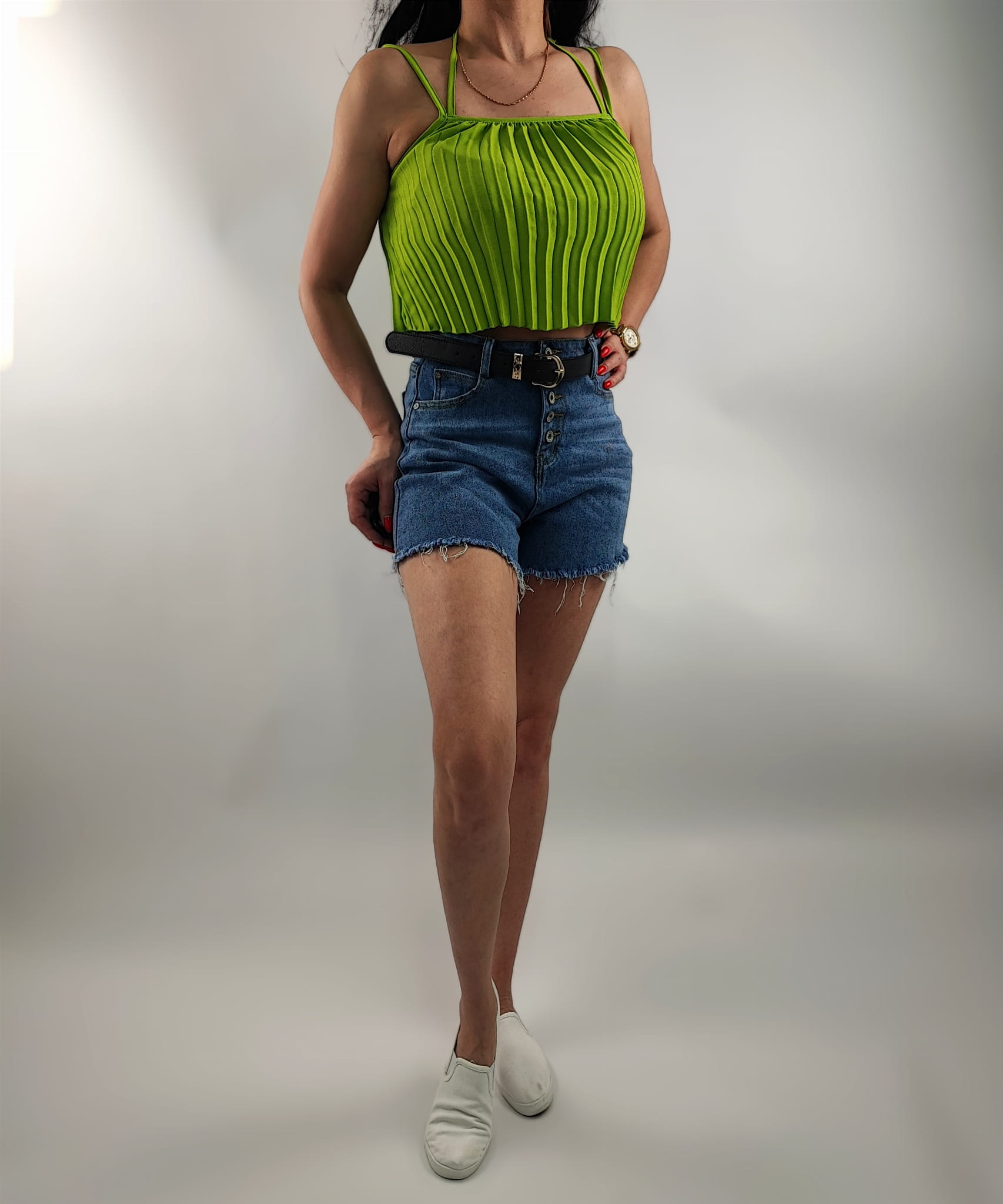 Top Damski Plisowany Italy na Ramiączkach Limonkowy Uniwersalny