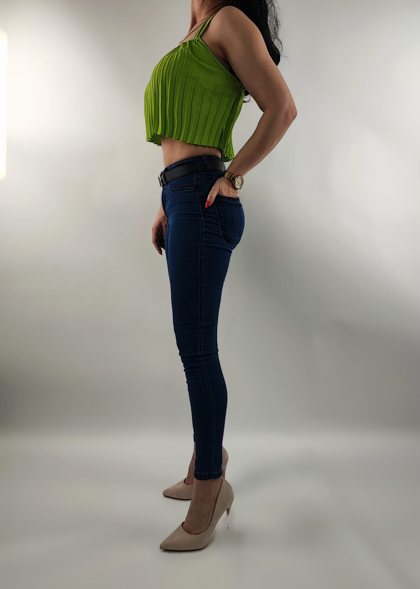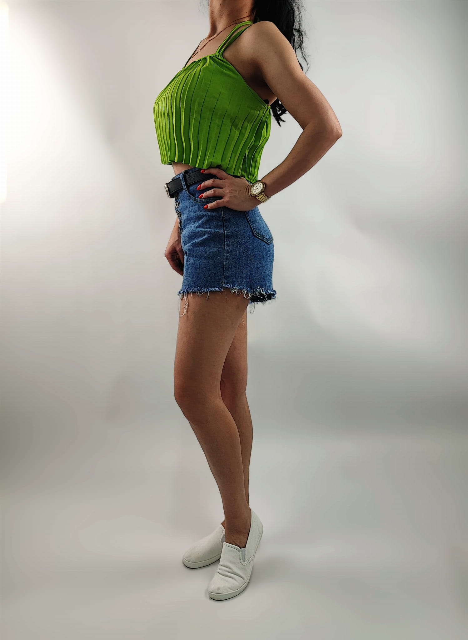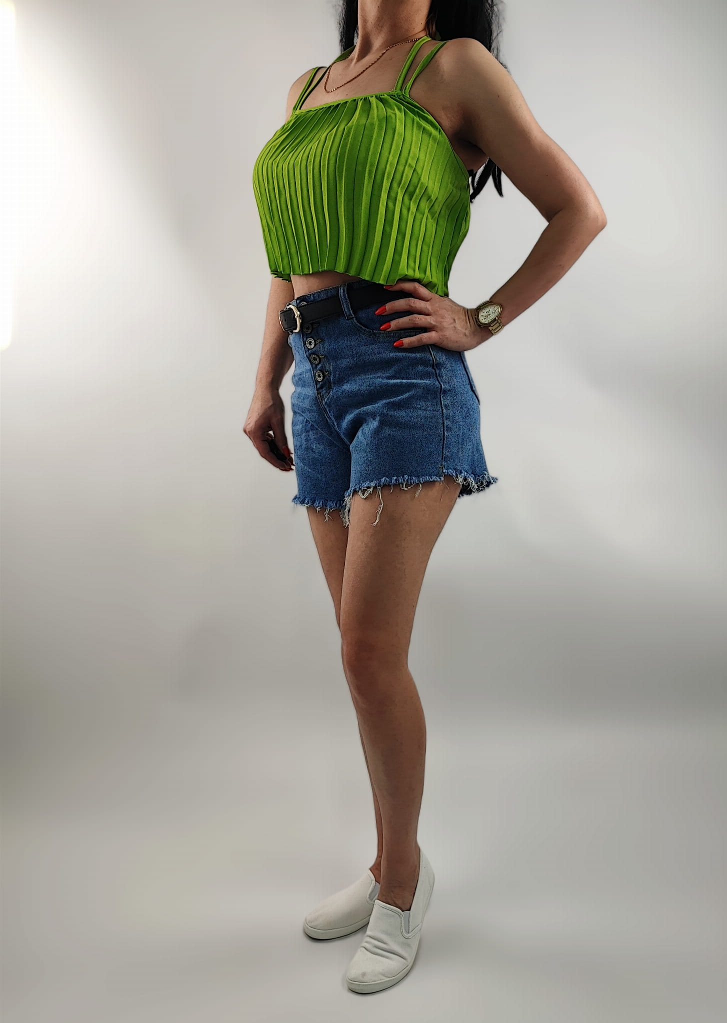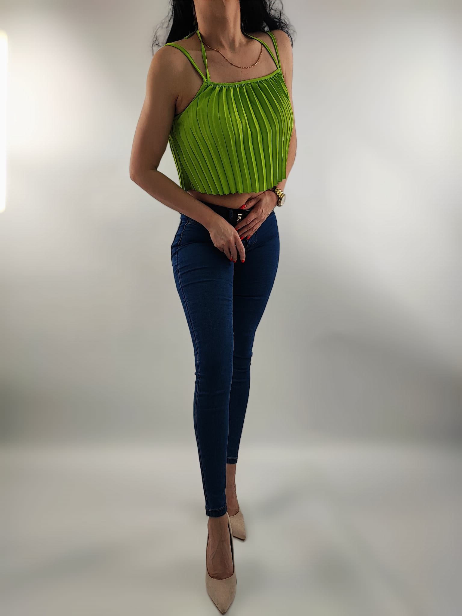 Delikatny, kobiecy plisowany Top o krótszym modnym kroju.