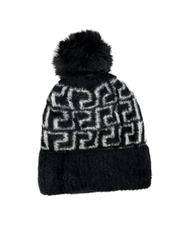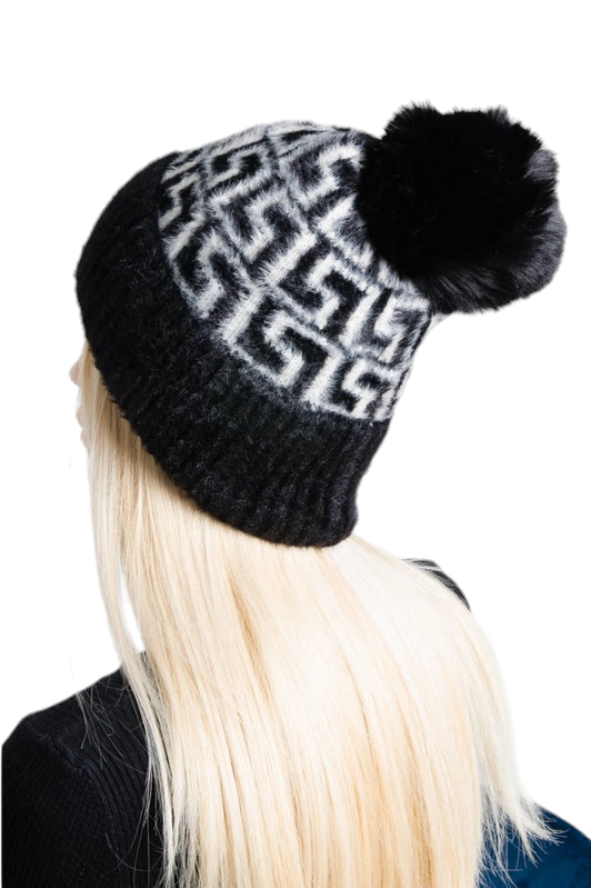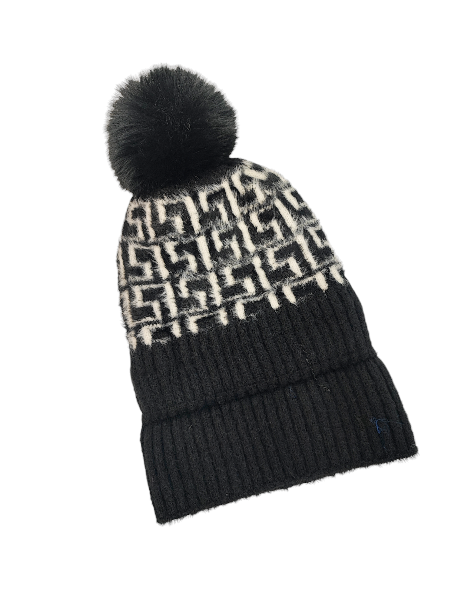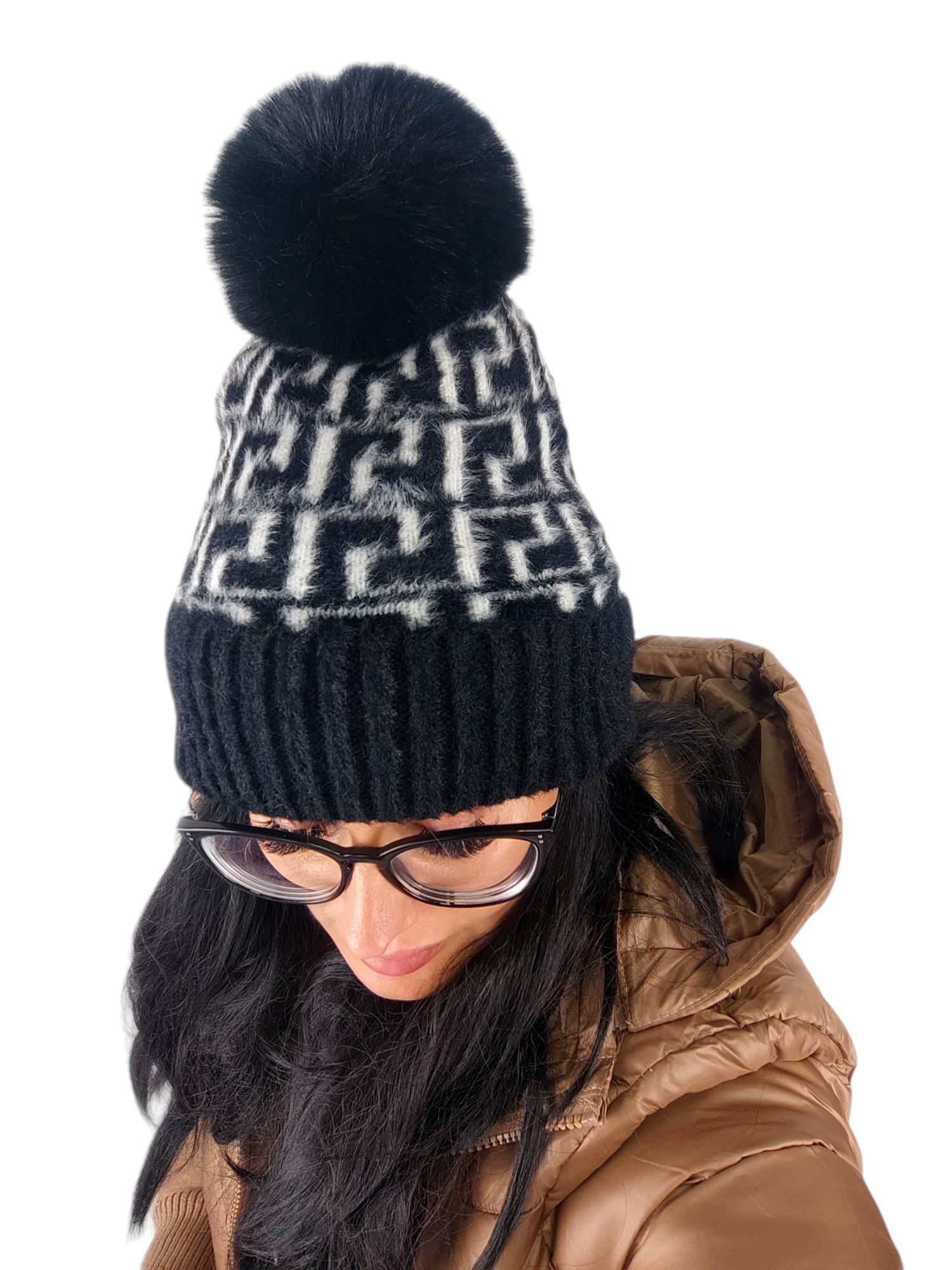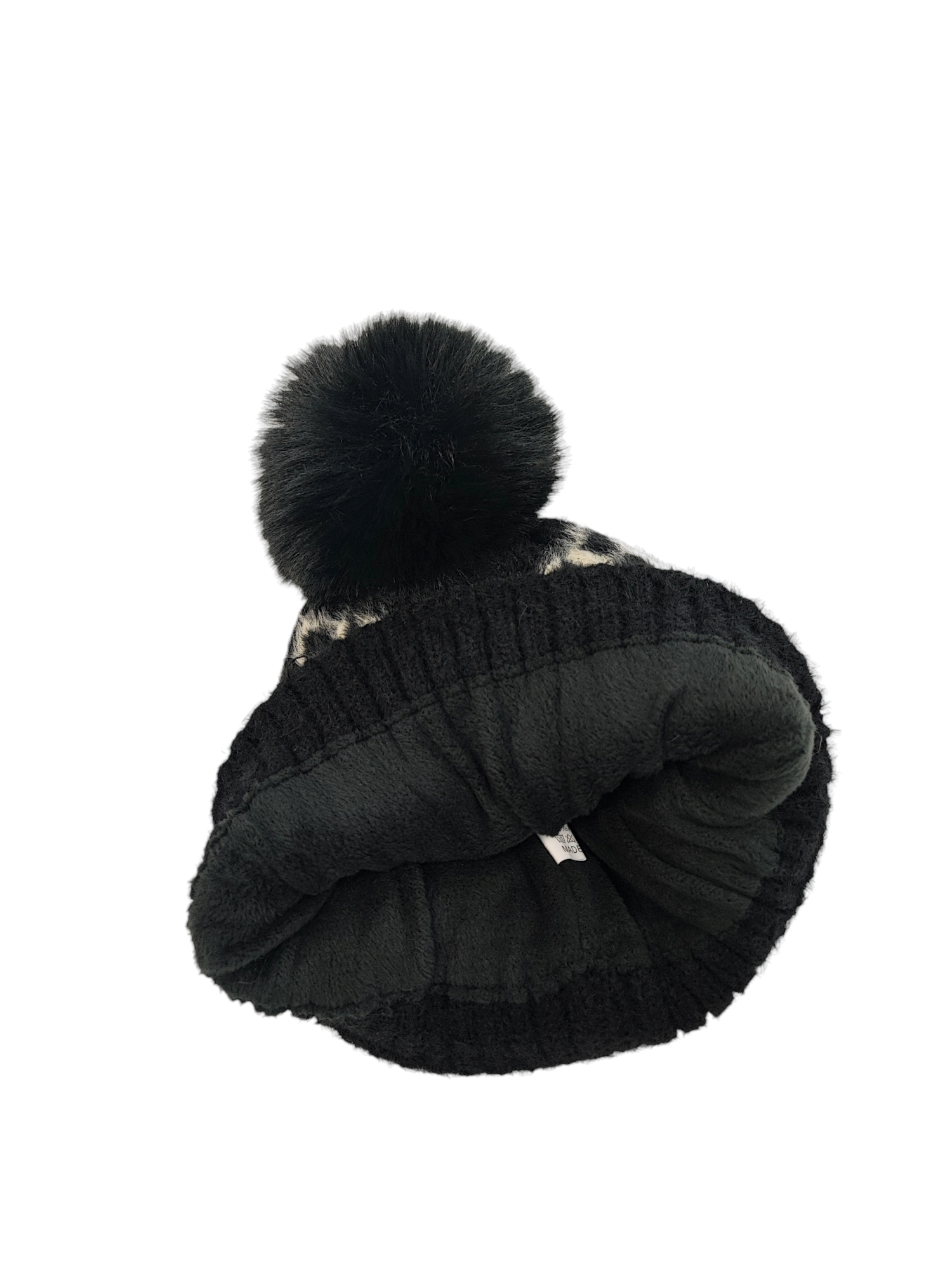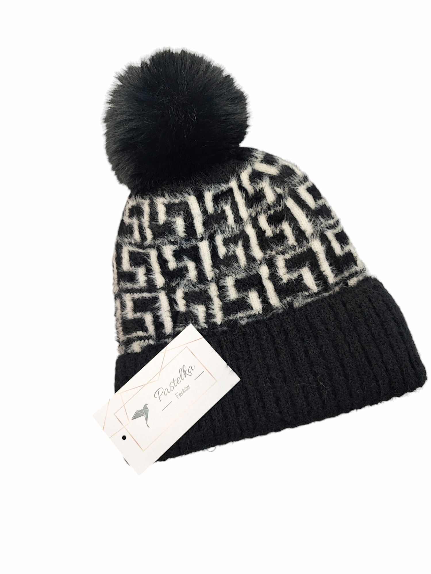 Zimowa Czapka Damska Na Polarze z Pomponem z Bąblem Alpaka Czarno Biała